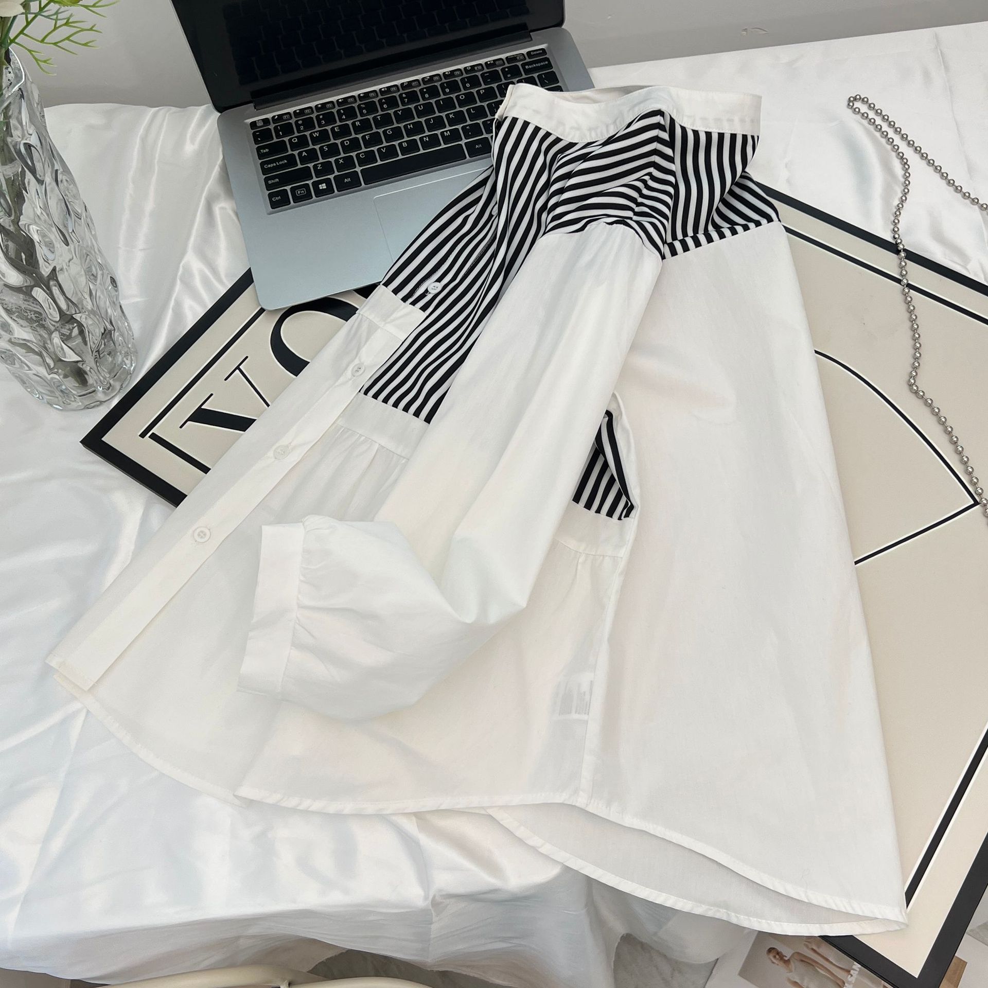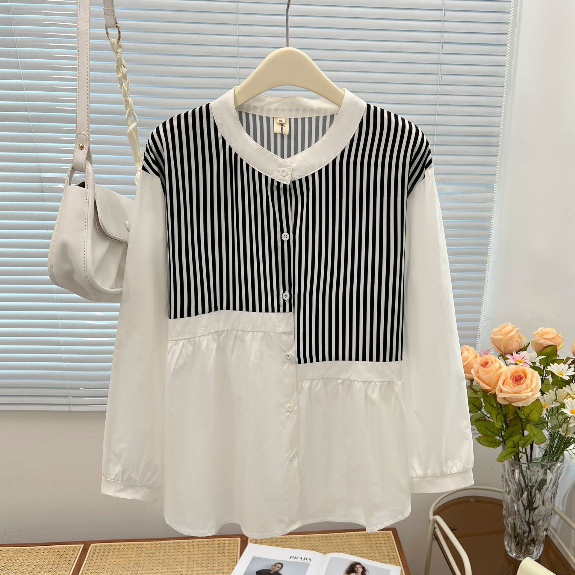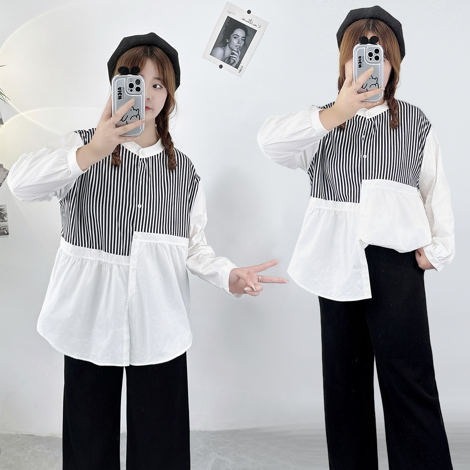 | nameOriginal | Autumn 200kg fat sister fashion all-match stand collar striped color matching long sleeve shirt plus size women's top 0081 |