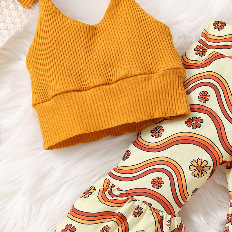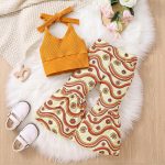 | nameOriginal | Autumn 2022 New European and American Girls Knitted Strap Backless Tube Top + Wave Flower Horn Long Pants |