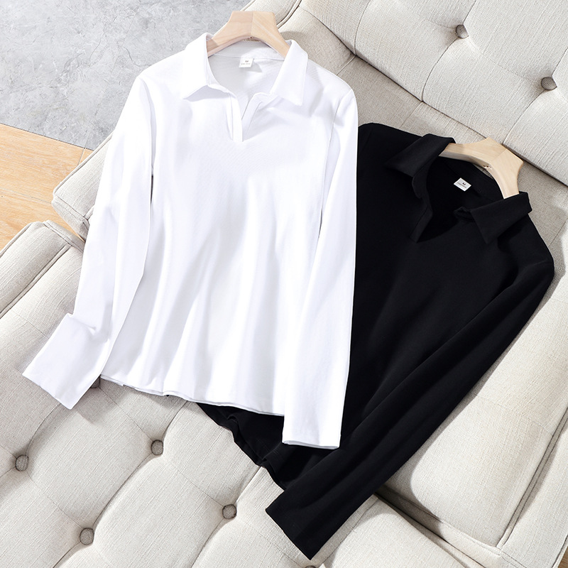 | nameOriginal | Autumn 2022 New Long Sleeve T-Shirt Women's Top Black V-Neck Base Shirt Outer Wear Lapel Polo Shirt Autumn and Winter |