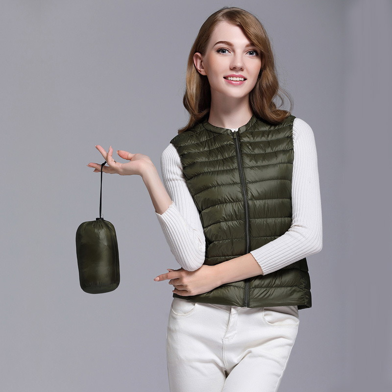 Autumn 2022 New Round Neck Collarless Short Vest Women’s Light Down Zipper Vest Sleeveless Inner Tank Vest