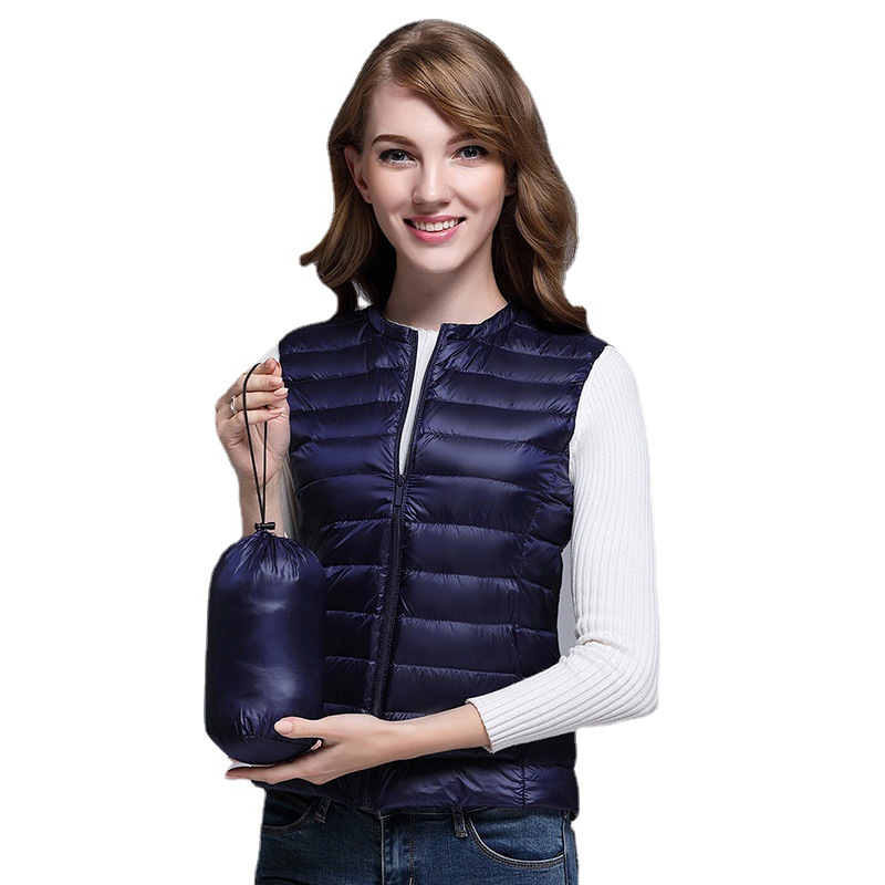 Autumn 2022 New Round Neck Collarless Short Vest Women's Light Down Zipper Vest Sleeveless Inner Tank Vest