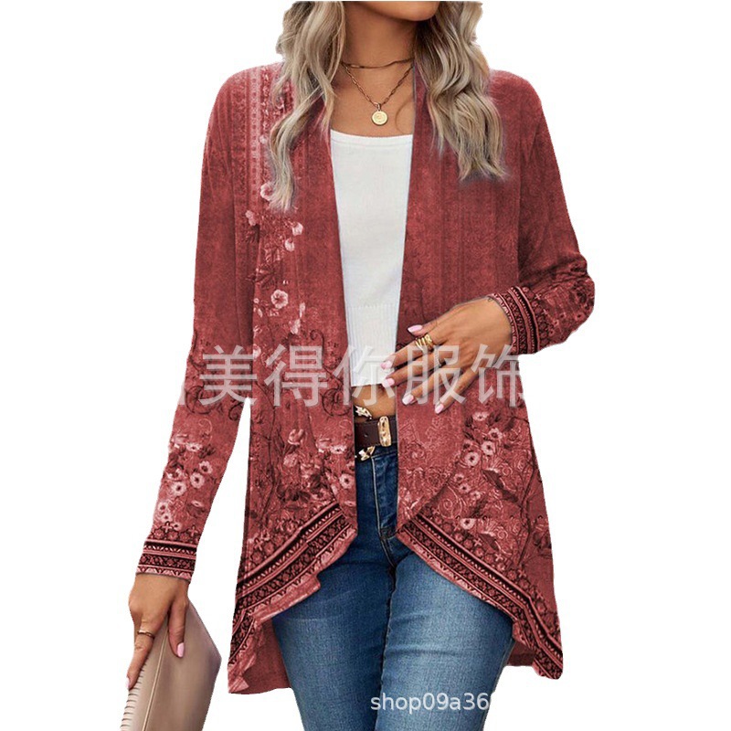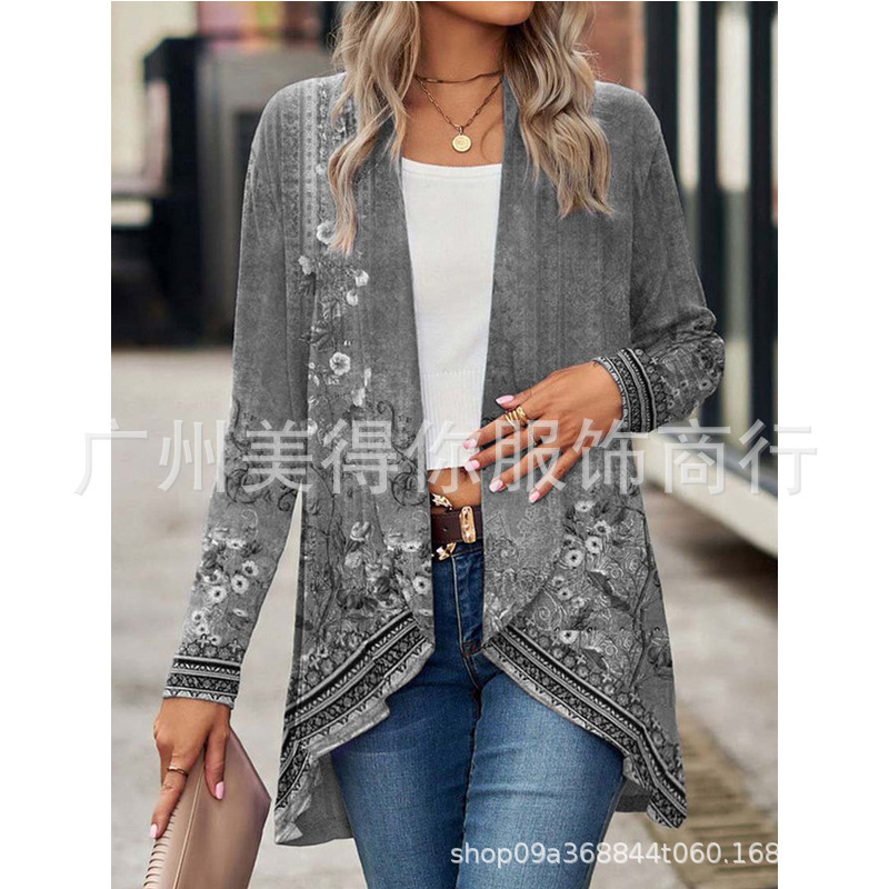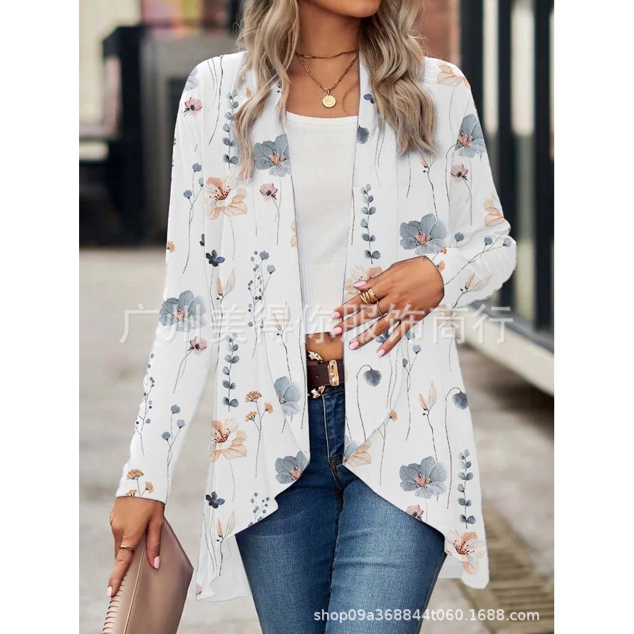 | nameOriginal | Autumn 2023 Amazon Europe and America Cross-border Cardigan Buckle-free Long Sleeve Plant Flower Print Women's Cloak Trench Coat |