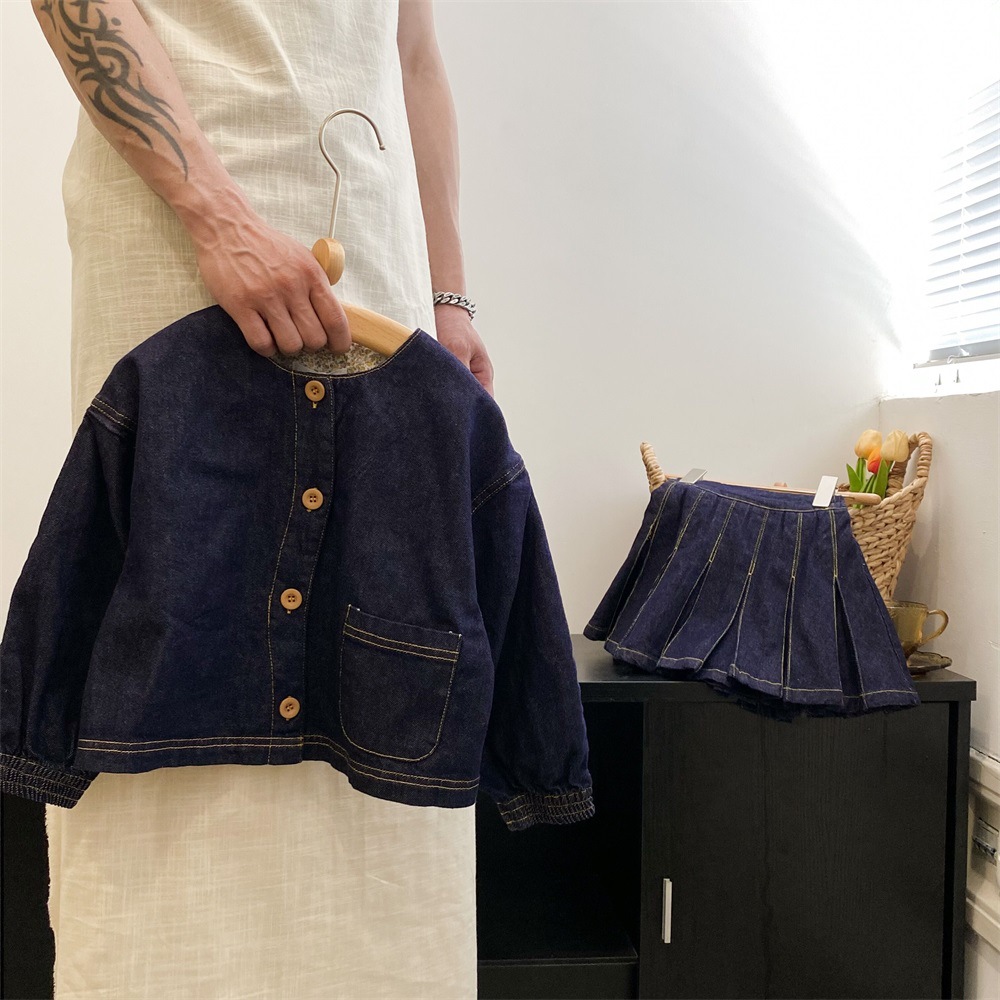 | nameOriginal | Autumn 2023 Girl's Washed Cotton Denim Jacket Korean Style Mori Style Crewneck Children's Denim Girl's Vintage Top |