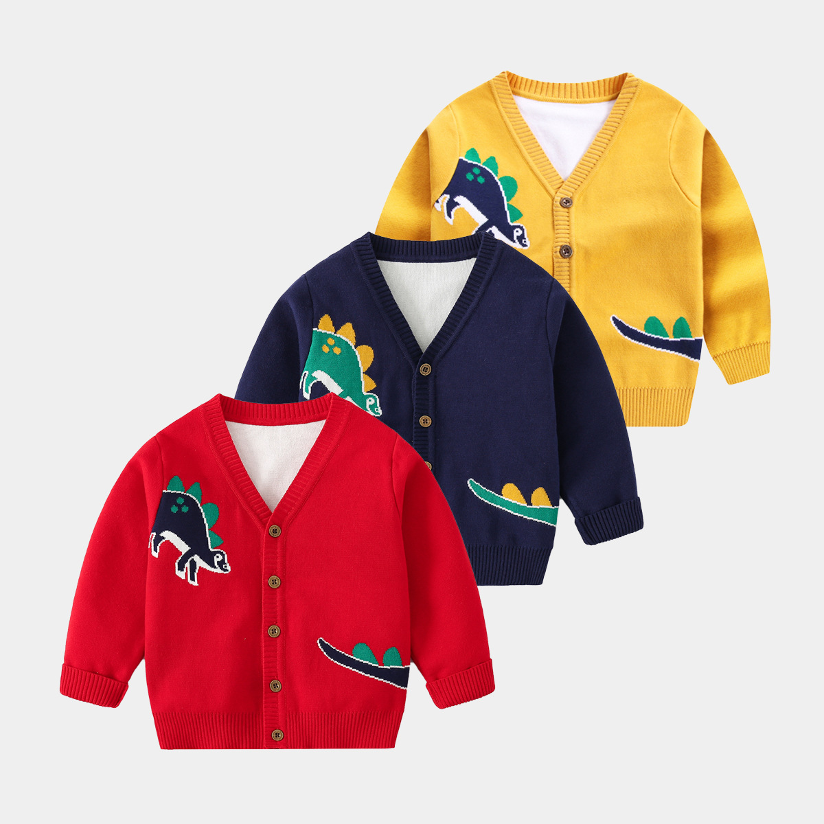 Autumn 2023 Korean style new boys’ sweater cardigan children’s dinosaur sweater baby casual top children’s clothing wholesale