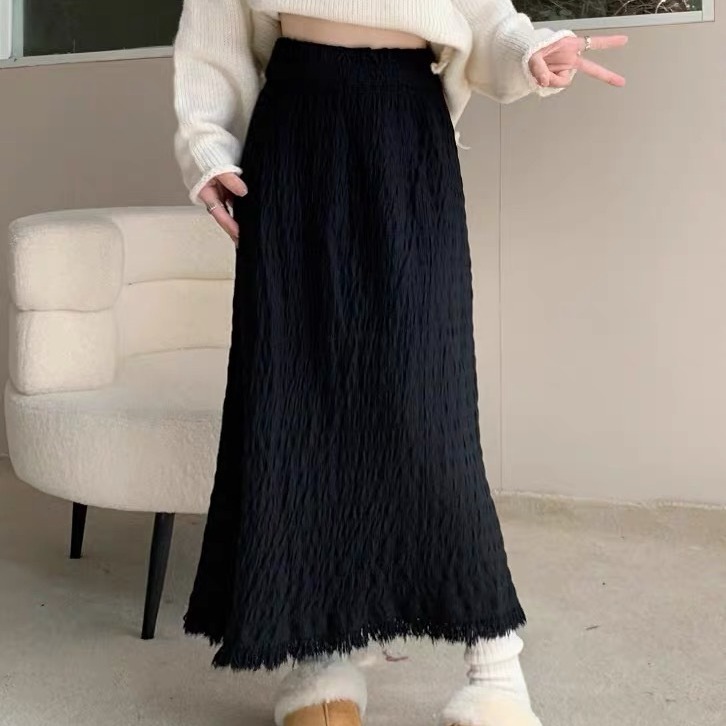 | nameOriginal | Autumn 2023 new Korean style niche pleated draping high waist versatile fashion straight frayed A- line skirt for women |