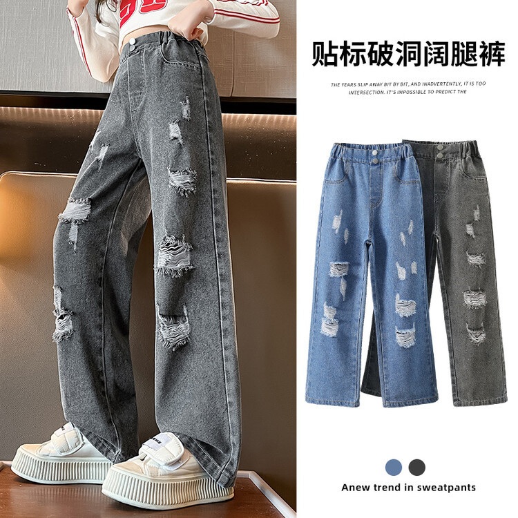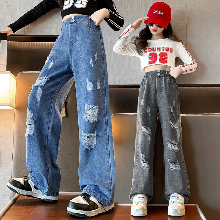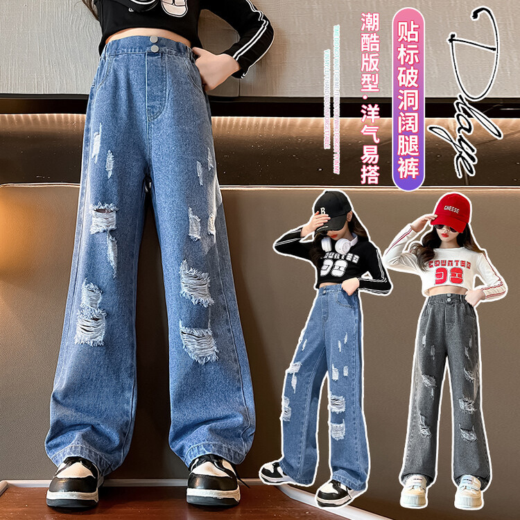| nameOriginal | Autumn 2024 American Street Washed Ripped Jeans Girls Retro Straight High Street Hip Hop Loose Wide Leg Pants |