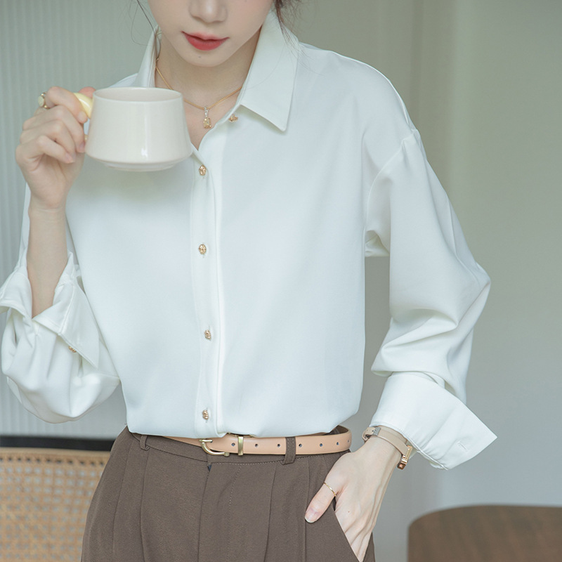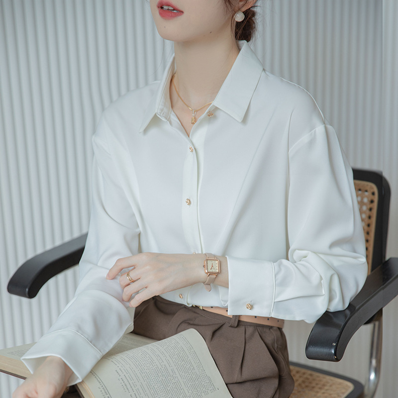 Autumn 2024 New Business Wear White Shirt Women's Long-sleeved Satin Shirt Niche French Top for Women