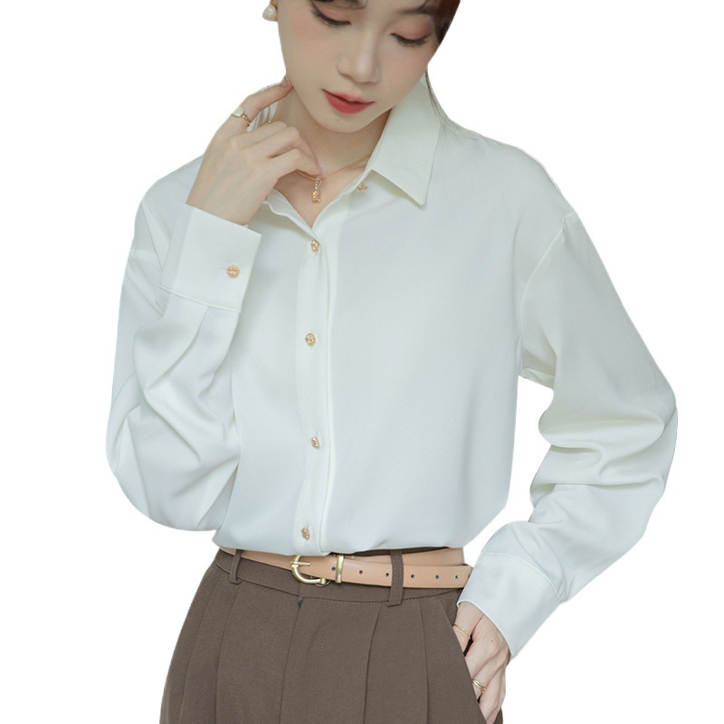 Autumn 2024 New Business Wear White Shirt Women's Long-sleeved Satin Shirt Niche French Top for Women