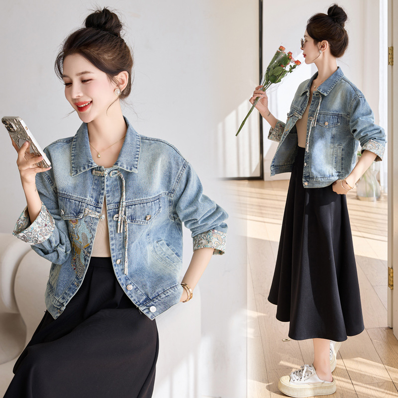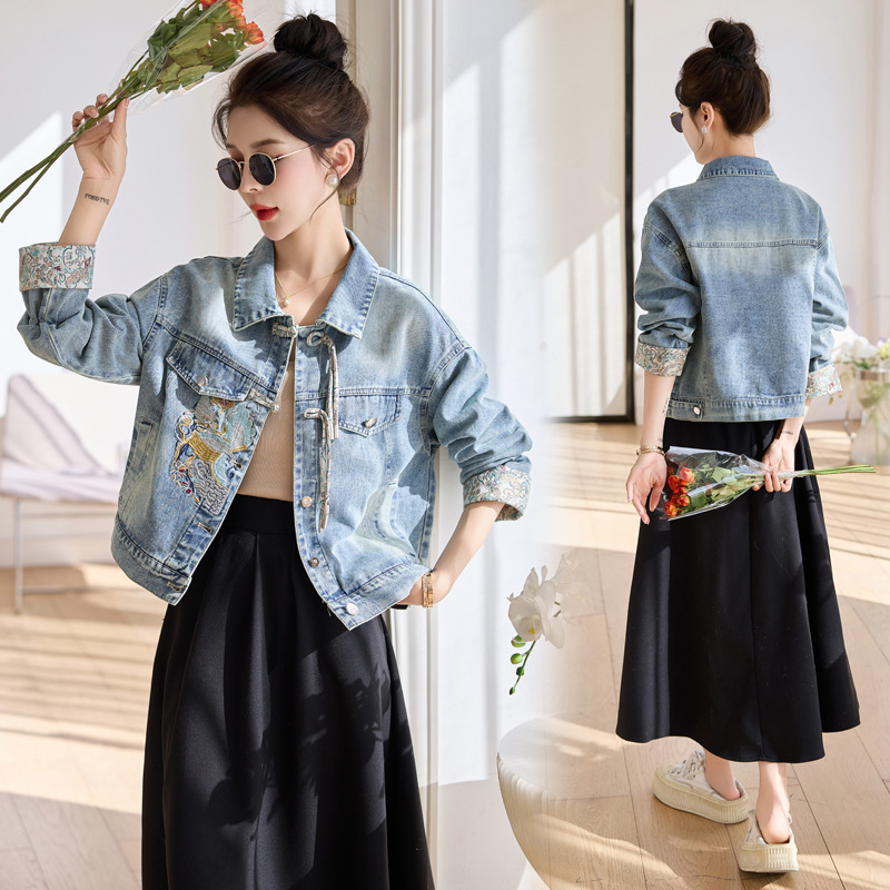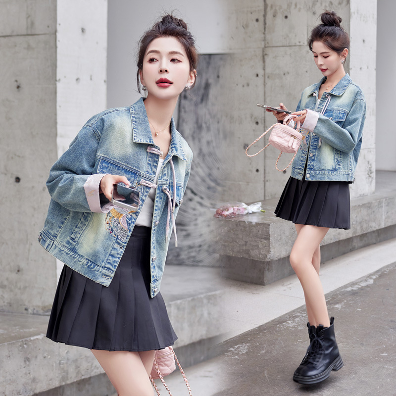 | nameOriginal | Autumn 2024 New Chinese Style National Style Trendy Embroidery Stitching Cuff Vintage Washed Short Denim Jacket |