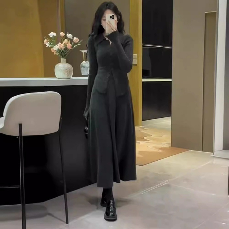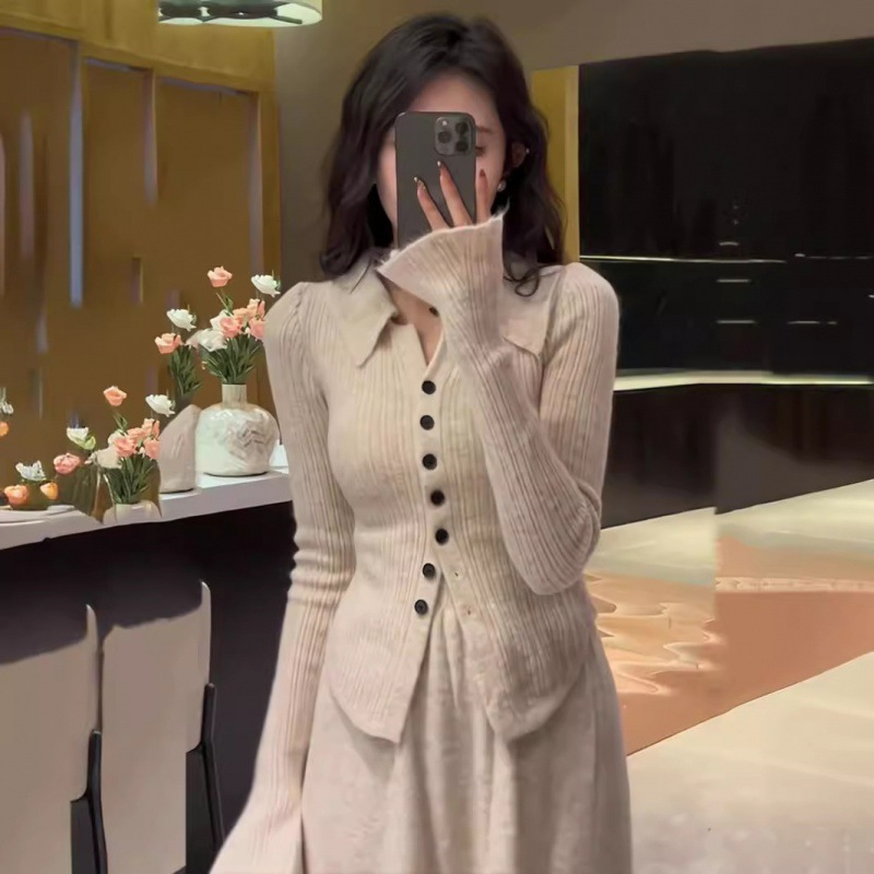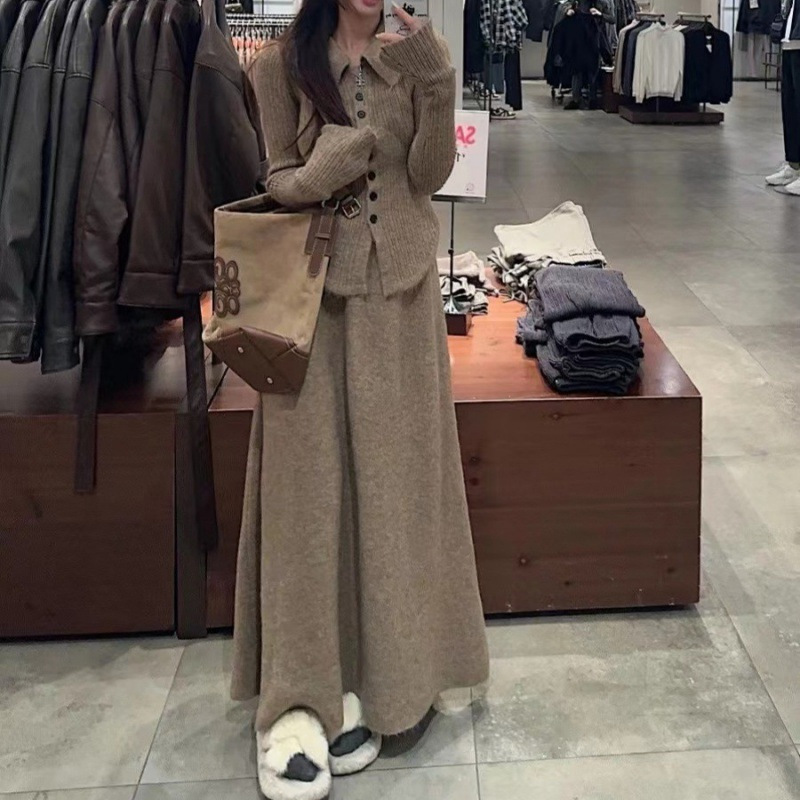 | nameOriginal | Autumn 2024 New Design Sense Korean Style Tight Waist Slim-fit Lapel Knitted Cardigan High Waist Skirt Two-piece Set for Women |