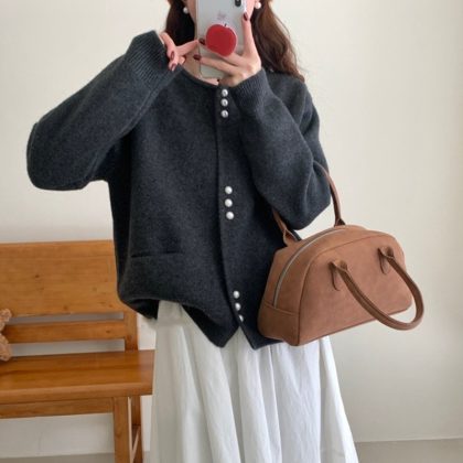 | nameOriginal | Autumn 2024 New Fashion Stylish Sweater Coat Women's Korean Style Loose Lazy Style Crewneck Knitted Cardigan Top |
