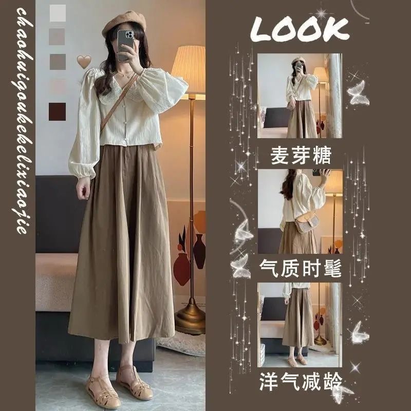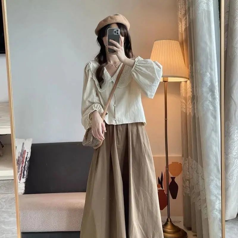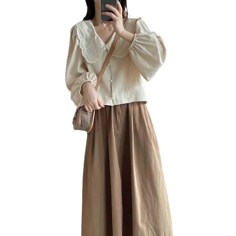 | nameOriginal | Autumn 2024 New French Sweet Style Design Feeling Temperament Shirt Small A- line Skirt Two-piece Set |