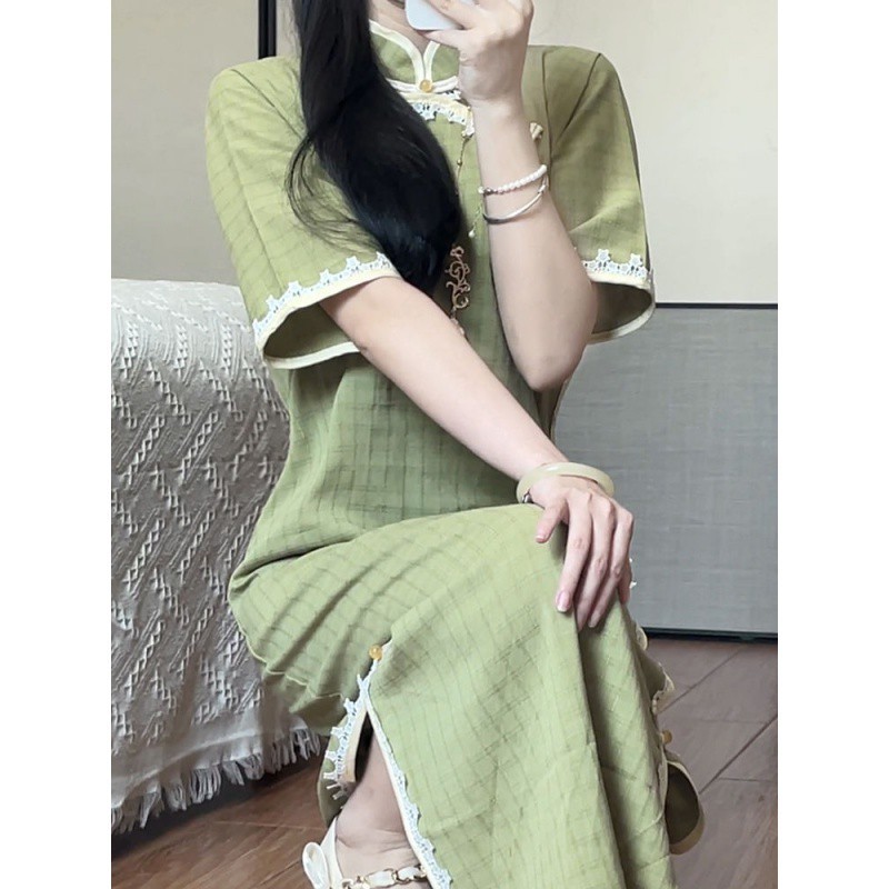 | nameOriginal | Autumn 2024 New Lace Vintage Green Plaid Improved Cheongsam Ancient Style Republic of China Long dress Women |