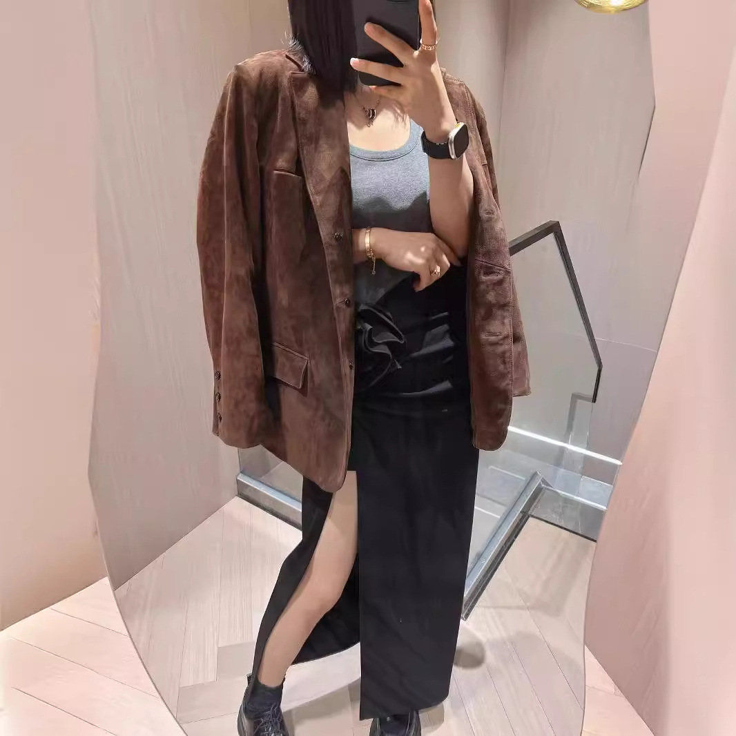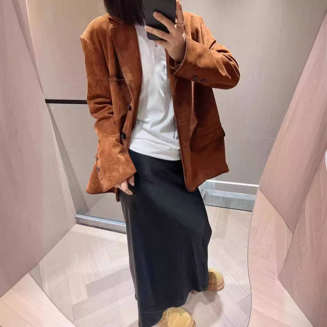 | nameOriginal | Autumn 2024 New Maillard College Style Imported Lambskin Suede Face Leather Wide Edition All-match Slimming Suit |