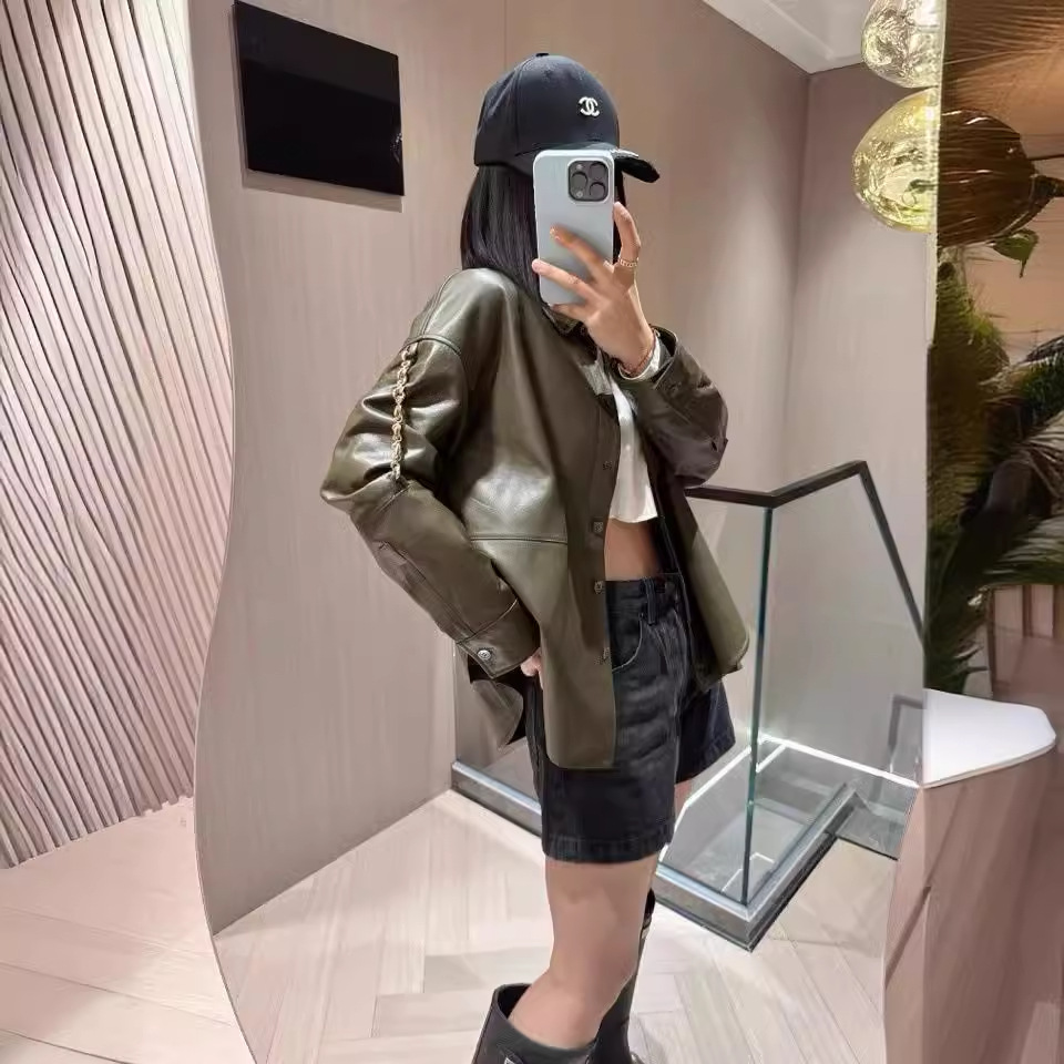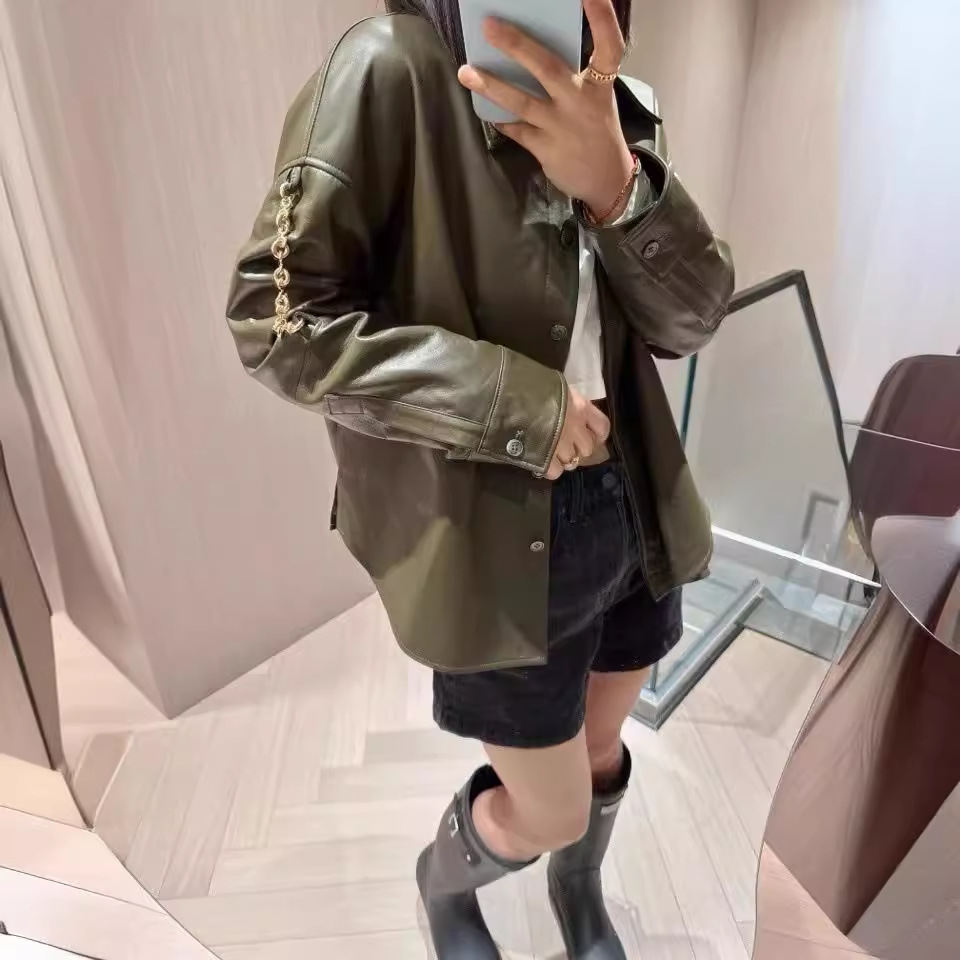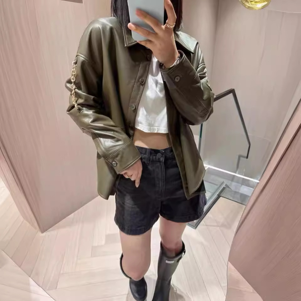 | nameOriginal | Autumn 2024 New Retro Green Loosen Shirt Collar Lambskin Coat Academy Style Side Slit Age-reducing All-match |