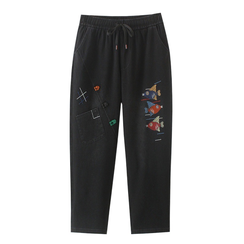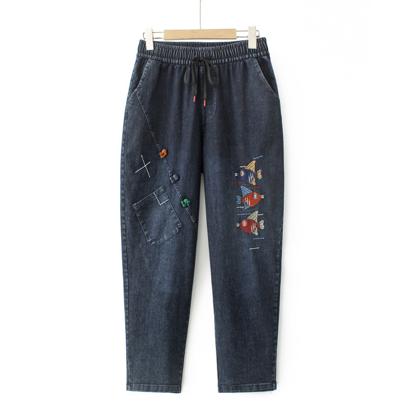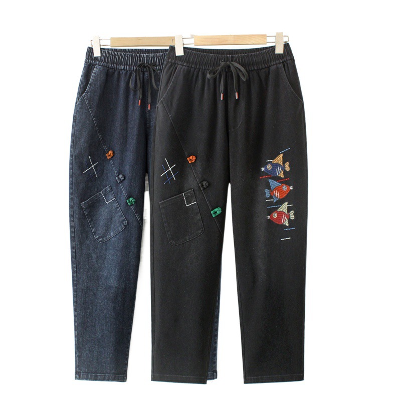 | nameOriginal | Autumn 2024 plus size mother fat elastic waist washed cotton embroidery stretch Denim trousers |