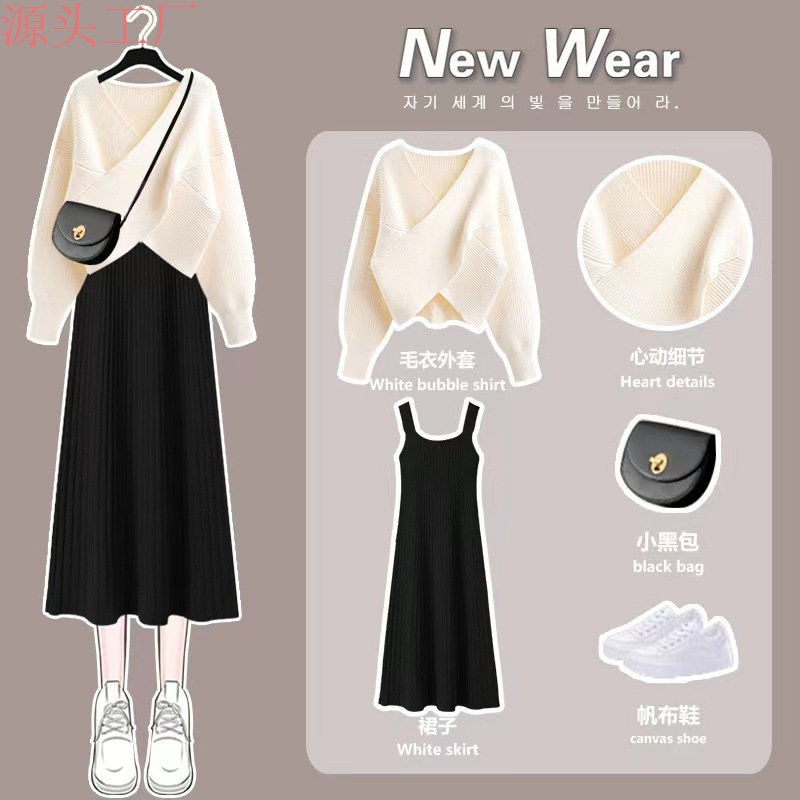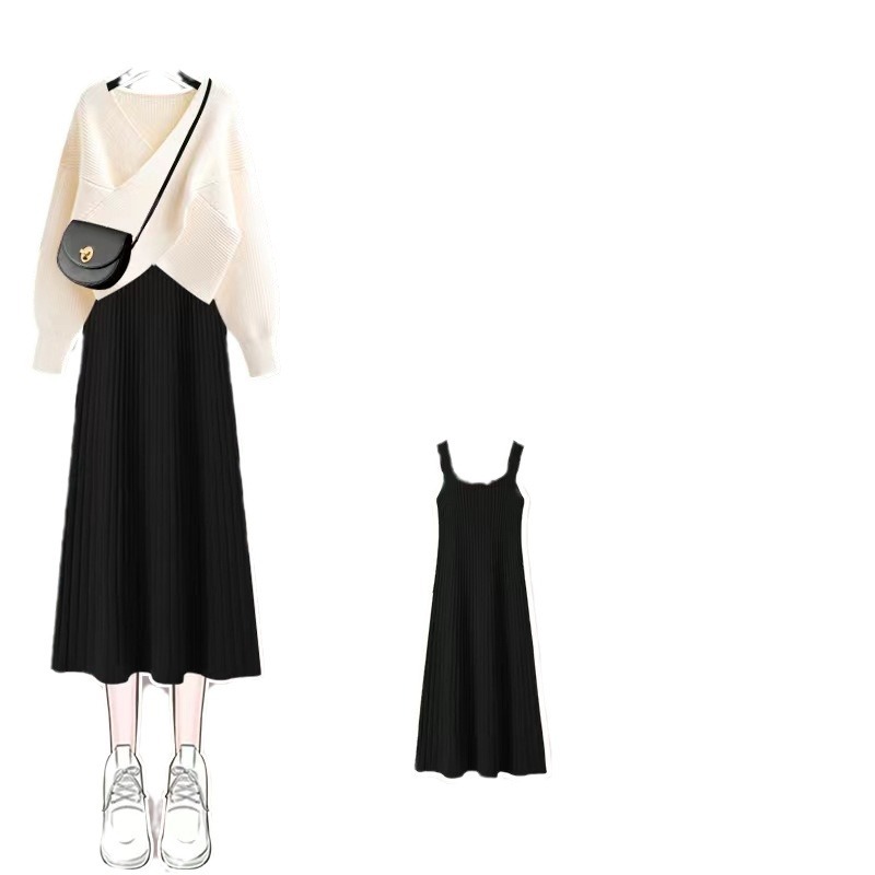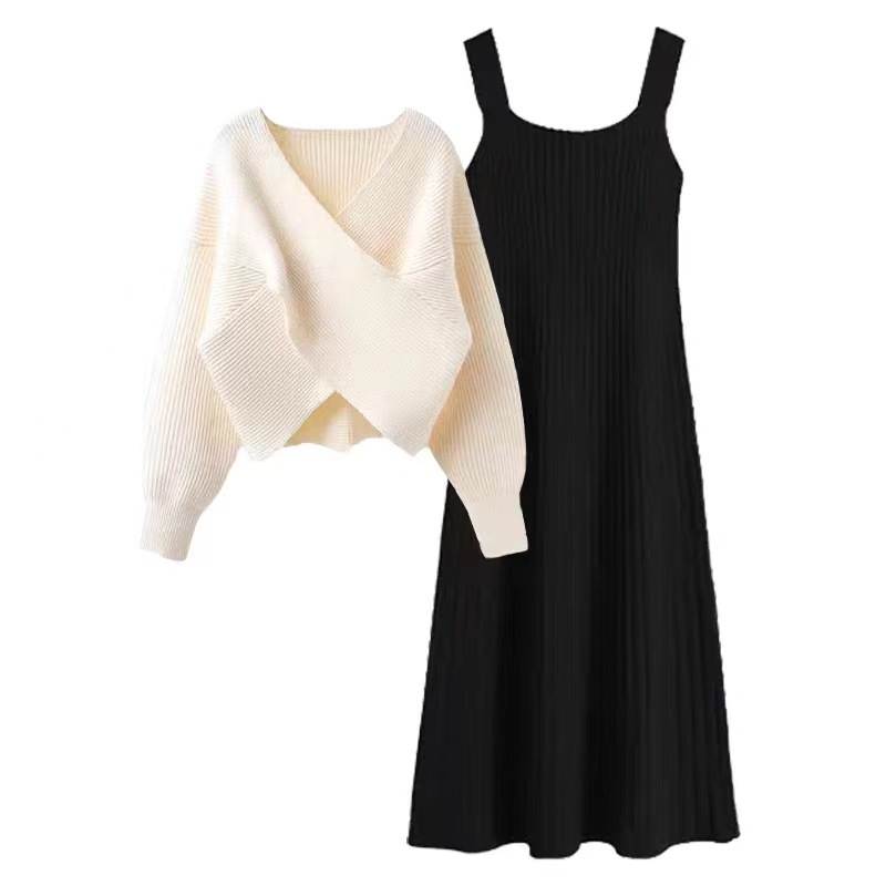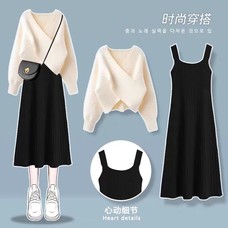 | nameOriginal | Autumn and spring inner knitted sling dress 2024 New design chic gentle style sweater dress two-piece set |