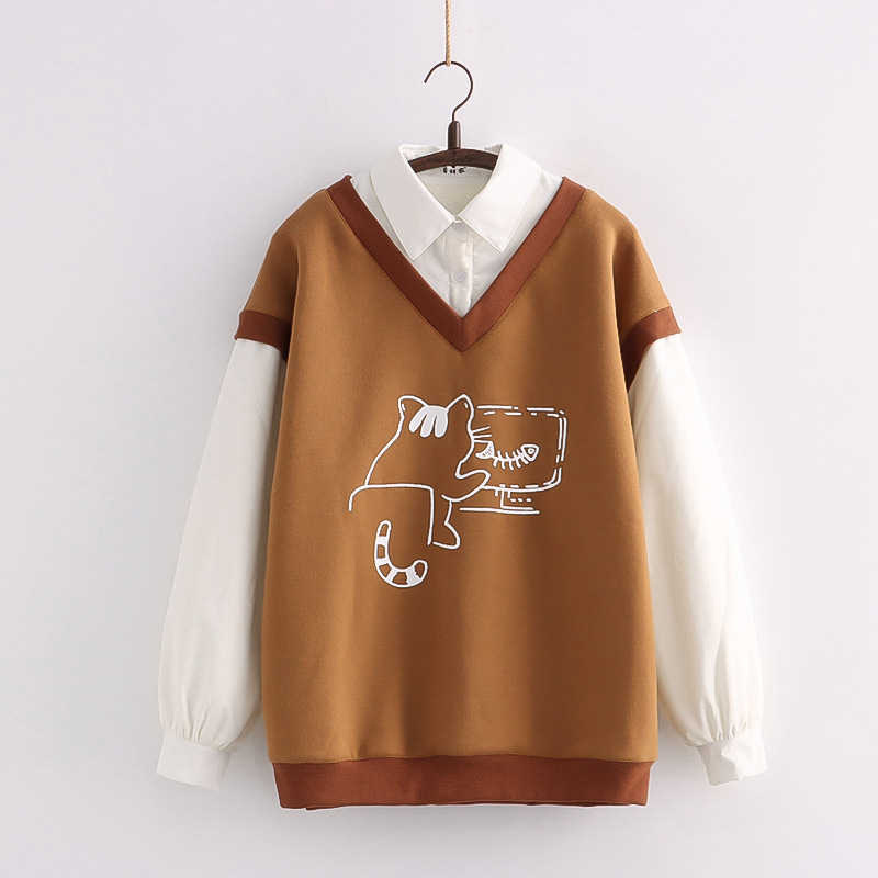 | nameOriginal | Autumn and Winter 2021 Japanese Style Casual Contrast Color Printing College Style Polo Collar Fake Two-Piece Fleece Sweatshirt for Women |