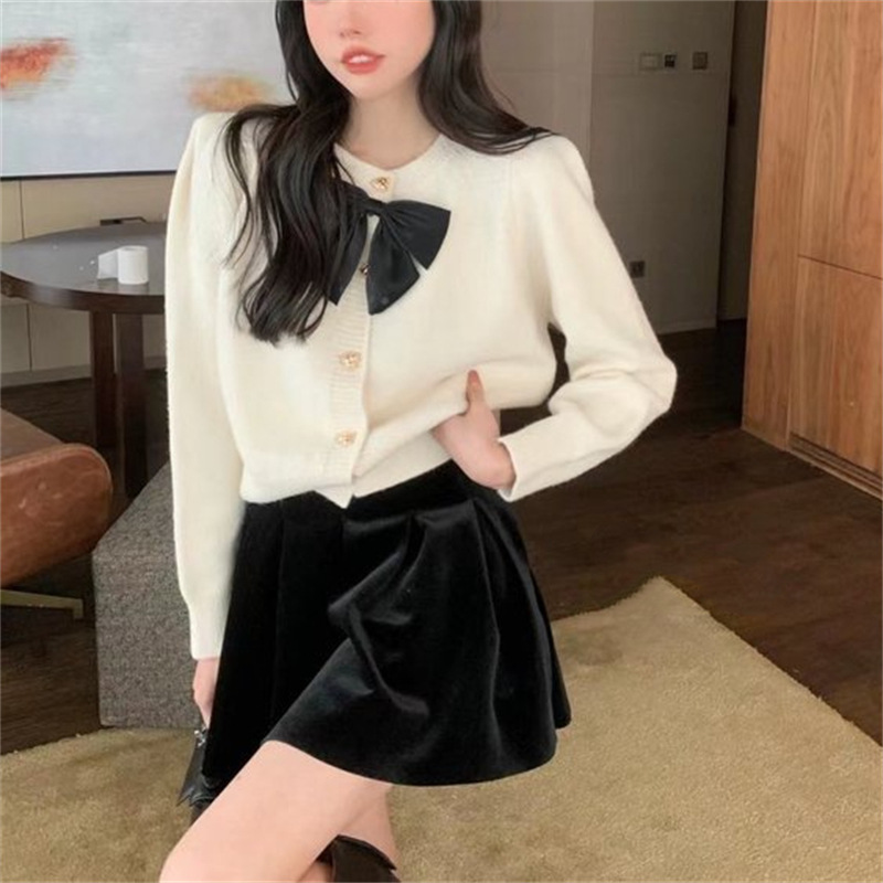 | nameOriginal | Autumn and Winter 2022 New Bow Design Sense Niche Short Knitted Top Women's Chanel Style Sweater Cardigan Women's Clothing |