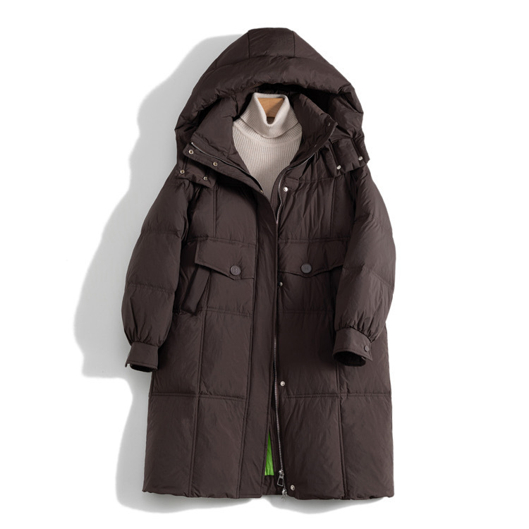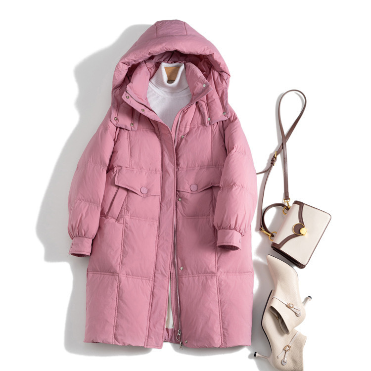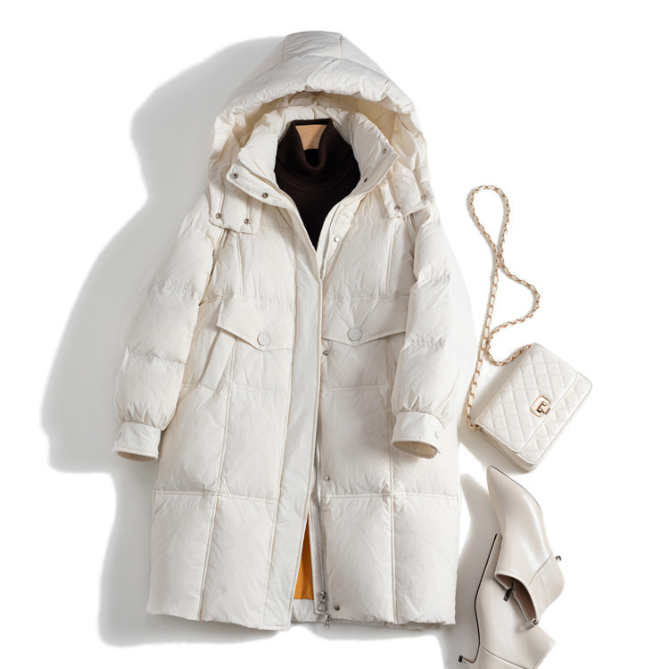 Autumn and Winter 2024 New Down Jacket Women's Korean-style Dongdaemun Mid-length Hooded Thickened White Duck Down Winter Jacket
