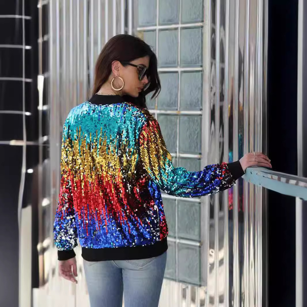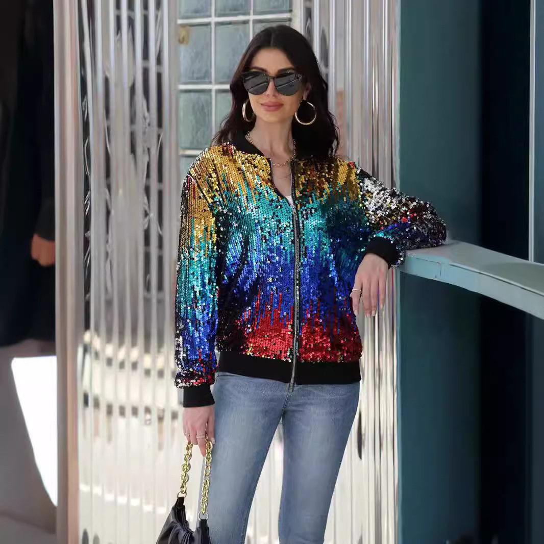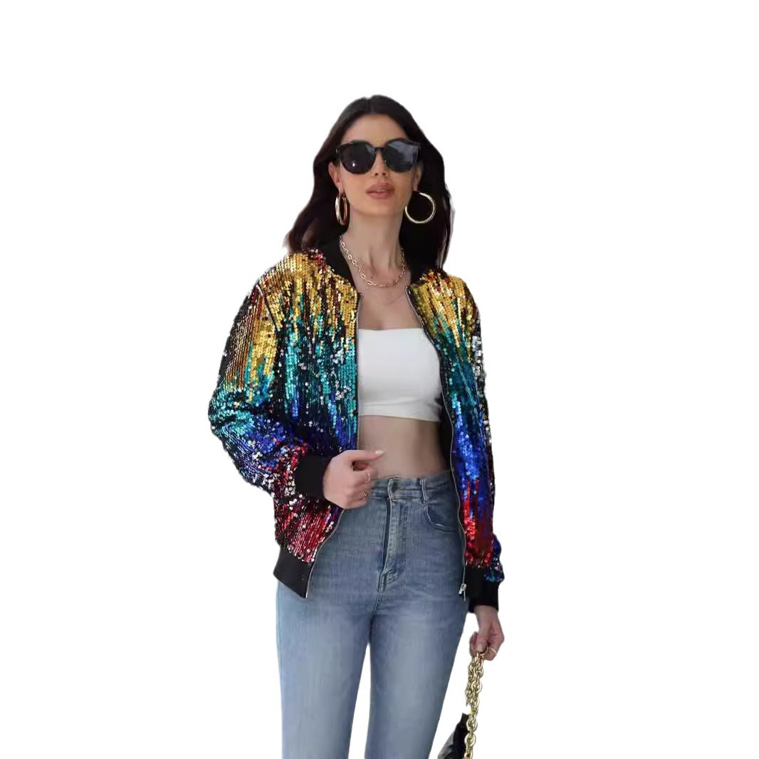 | nameOriginal | Autumn and Winter 2024 Small Coat Gradient Sequin Long Sleeve Sports Jacket Baseball Suit Fashionable Vertical Collar Short Coat for Women |