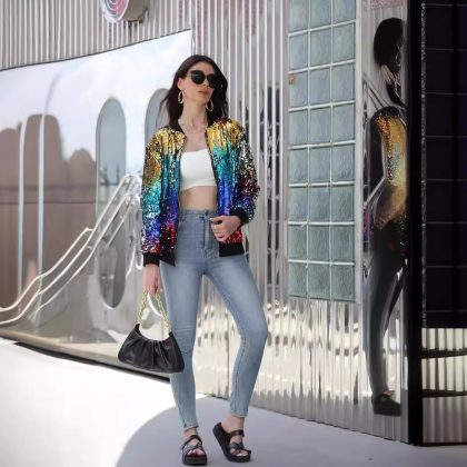 | nameOriginal | Autumn and Winter 2024 Small Coat Gradient Sequin Long Sleeve Sports Jacket Baseball Suit Fashionable Vertical Collar Short Coat for Women |