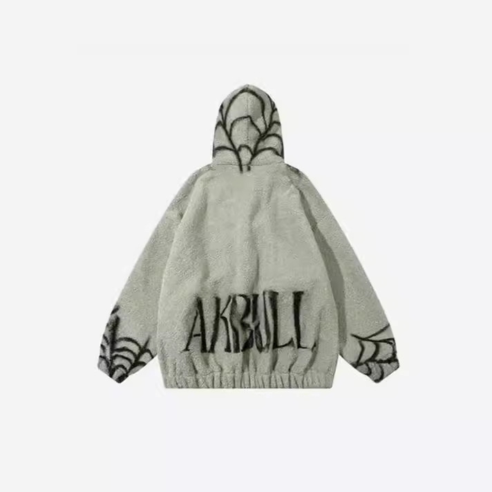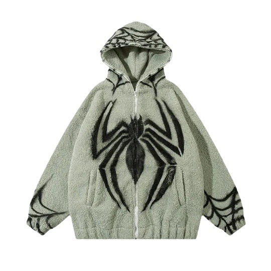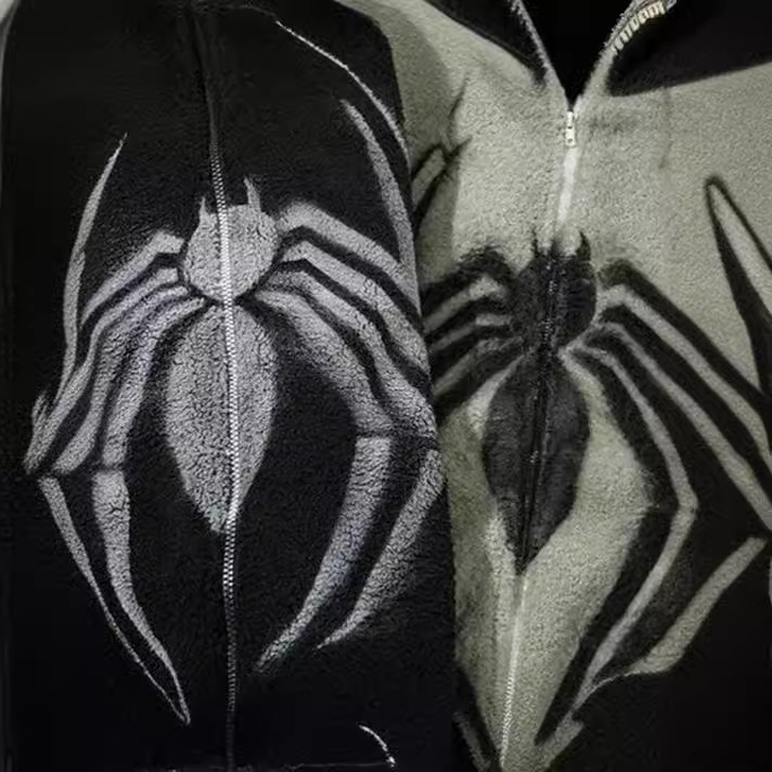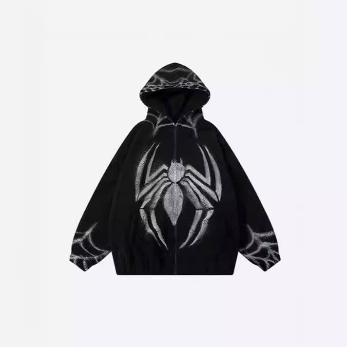 Autumn and winter American street fashion retro y2g spider spray-dyed men’s and women’s same zipper hooded jacket
