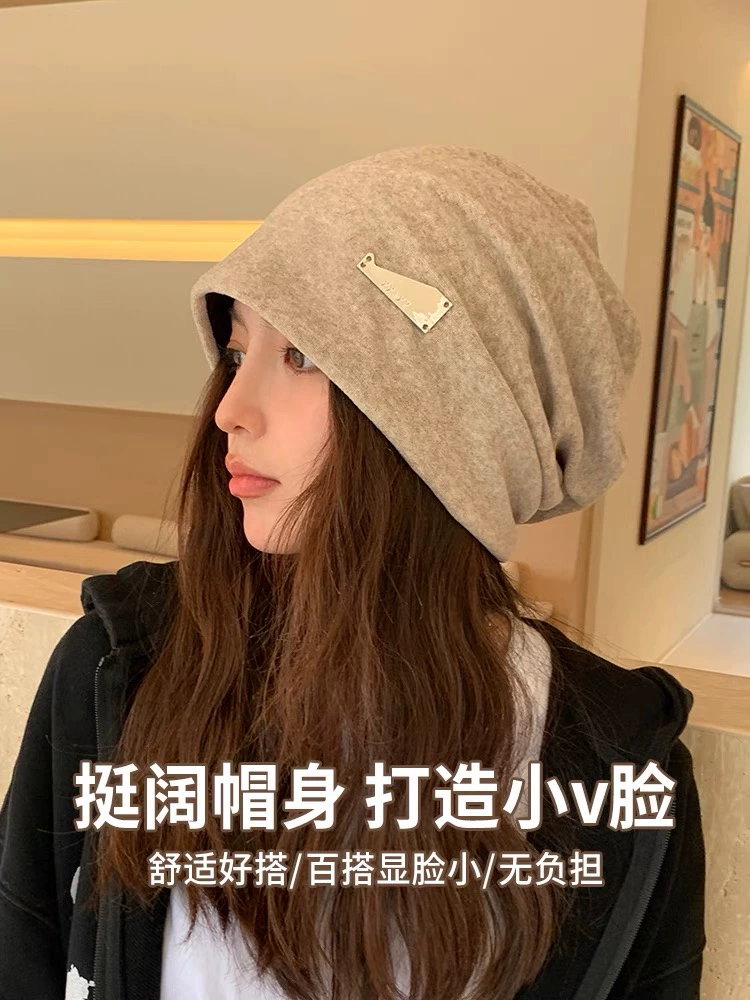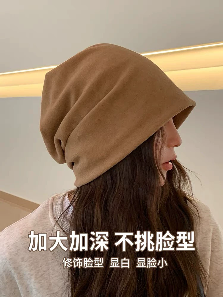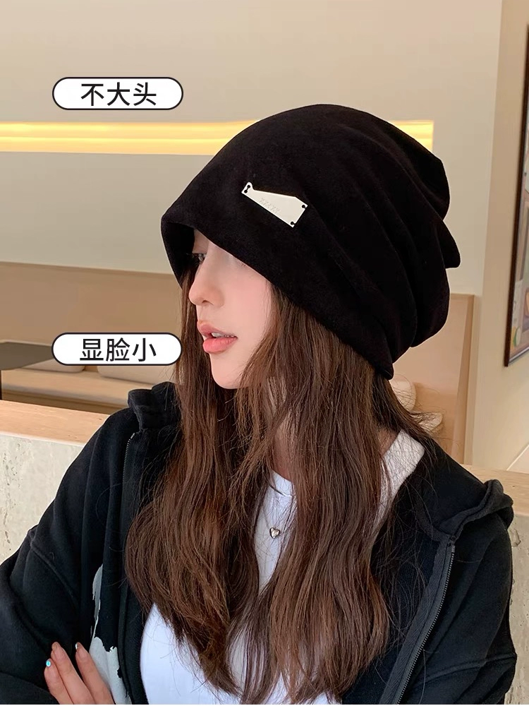 | nameOriginal | Autumn and winter black cold hat with big head circumference to show face, postpartum confinement hat, autumn Korean style shopping Baotou pile hat |