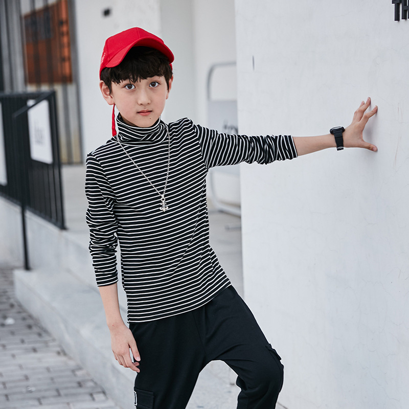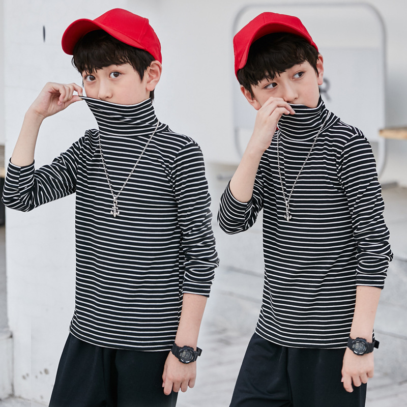 | nameOriginal | Autumn and Winter Boys' long-sleeved T-shirt cotton turtleneck bottoming shirt 110-160cm fashion striped turtleneck top wholesale |