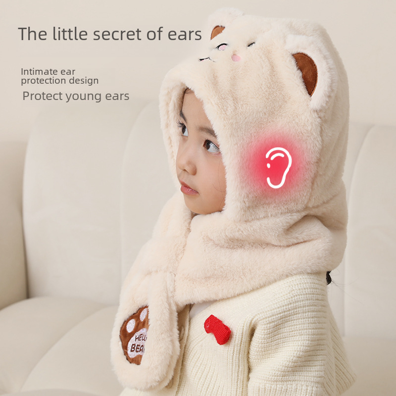 Autumn and Winter Children’s hat Korean-style cute baby earmuffs hat boys and girls scarf integrated hat children’s pullover hat