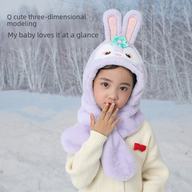 Autumn and Winter Children's hat Korean-style cute baby earmuffs hat boys and girls scarf integrated hat children's pullover hat