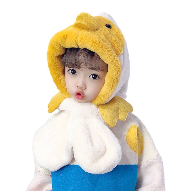 Autumn and Winter Children’s Hat Scarf Two-piece Cute Cartoon Penguin Little Yellow Duck Plush Pullover Cap for Boys and Girls
