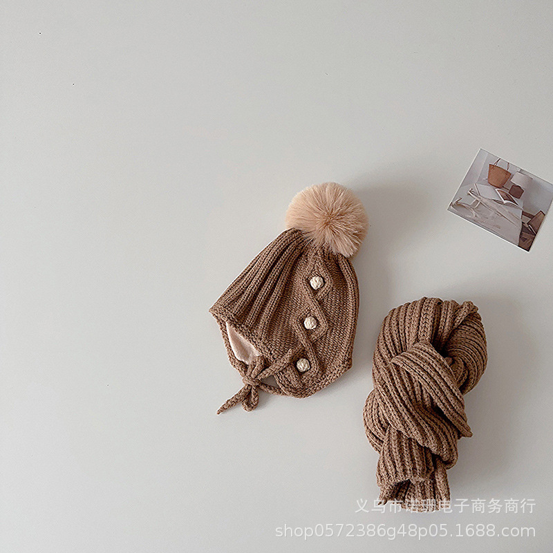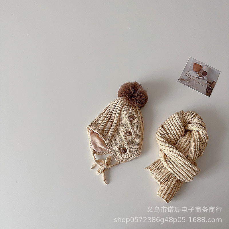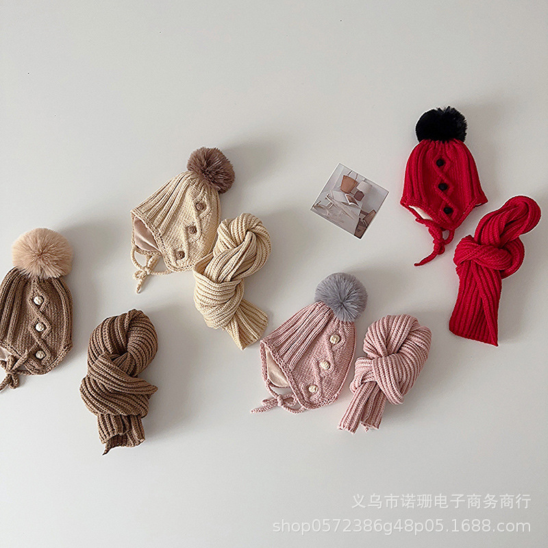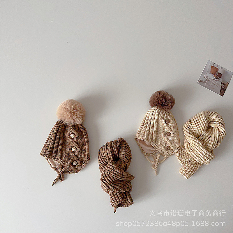 Autumn and Winter Children’s hat scarf two-piece knitted scarf earmuffs male and female baby outdoor pullover winter warm