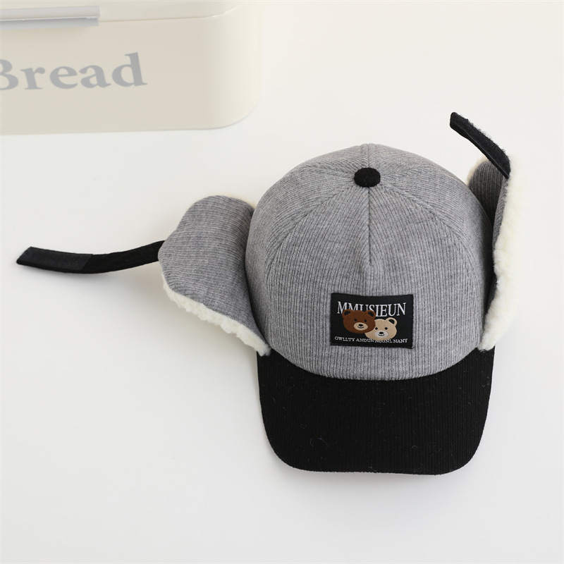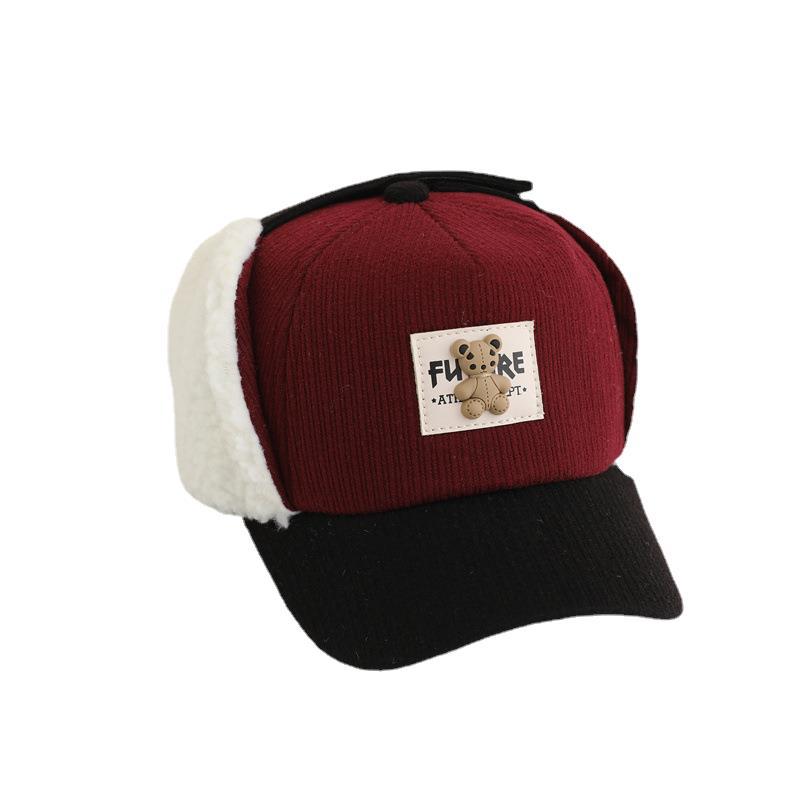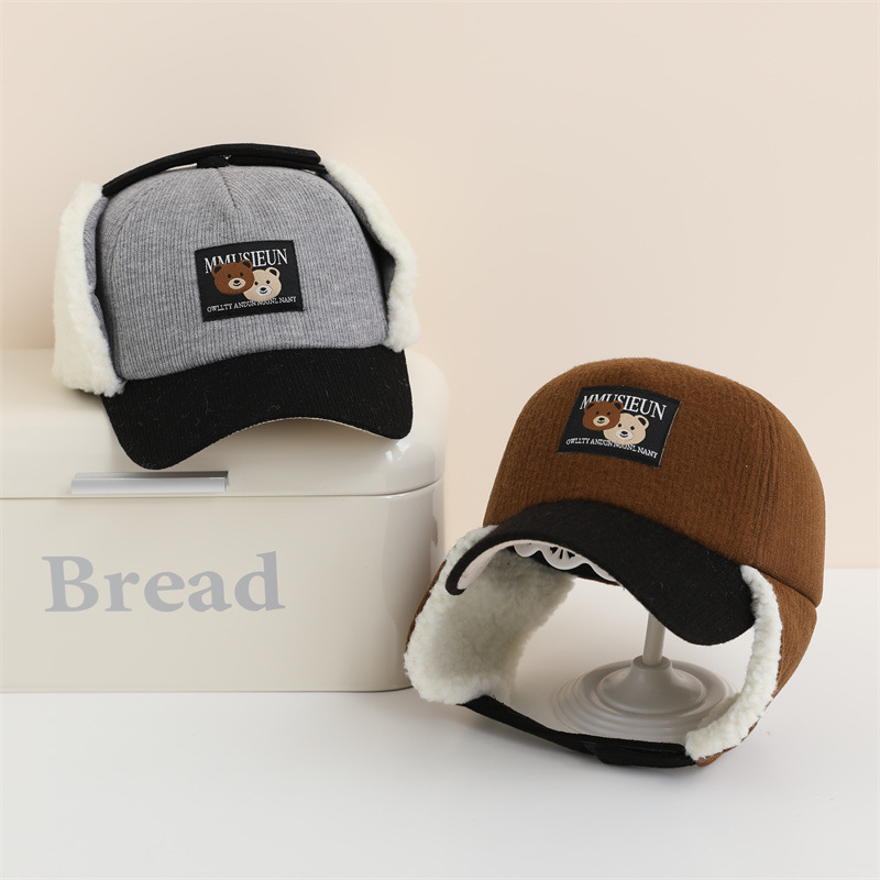 | nameOriginal | Autumn and Winter Children's Lei Feng hat R letter cartoon bear ear protection plush baseball cap thickened warm peaked cap |