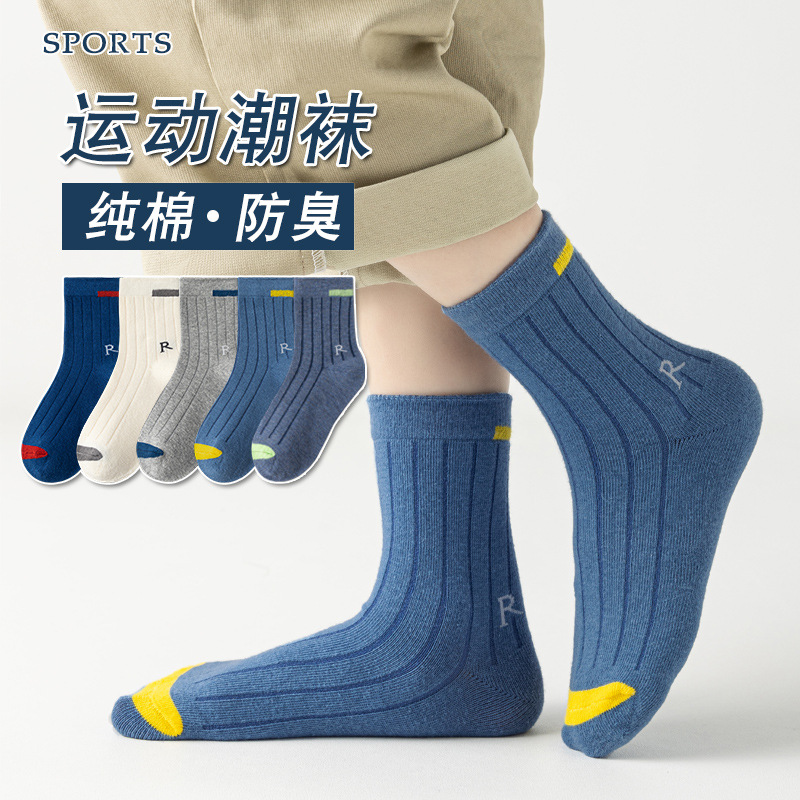 | nameOriginal | Autumn and Winter Children's mid-calf socks boys' sweat-absorbent combed cotton trendy children's socks student letter socks cotton socks wholesale |