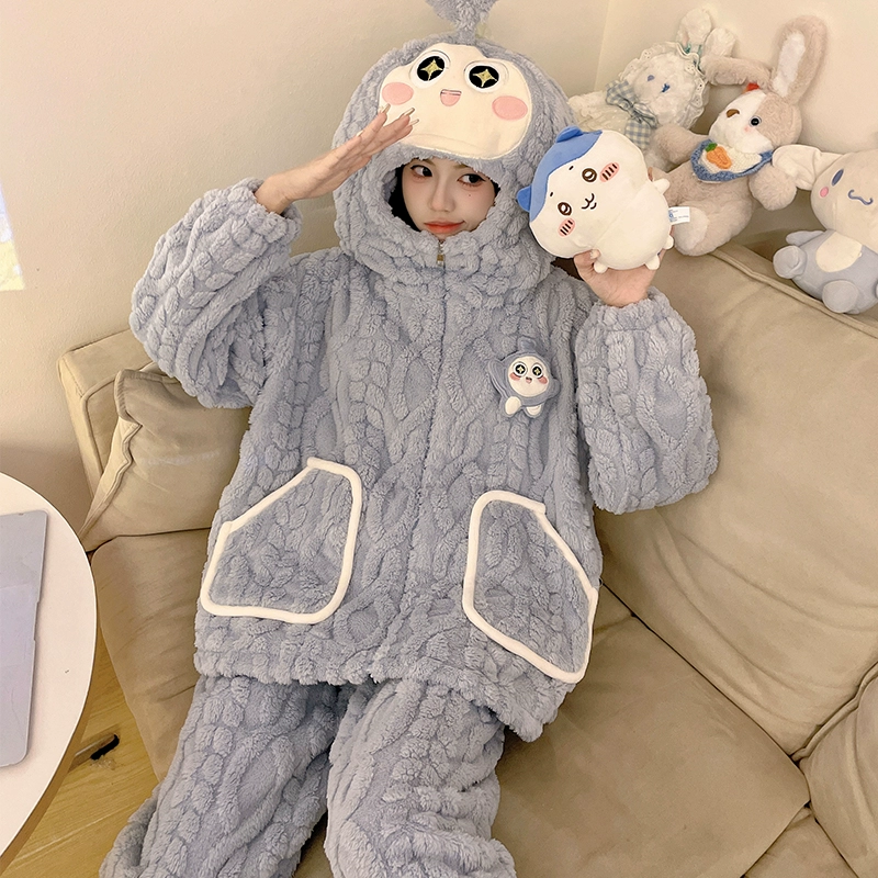 | nameOriginal | Autumn and winter coral velvet pajamas for women 2024 new cartoon panda hooded thickened velvet winter home wear set |