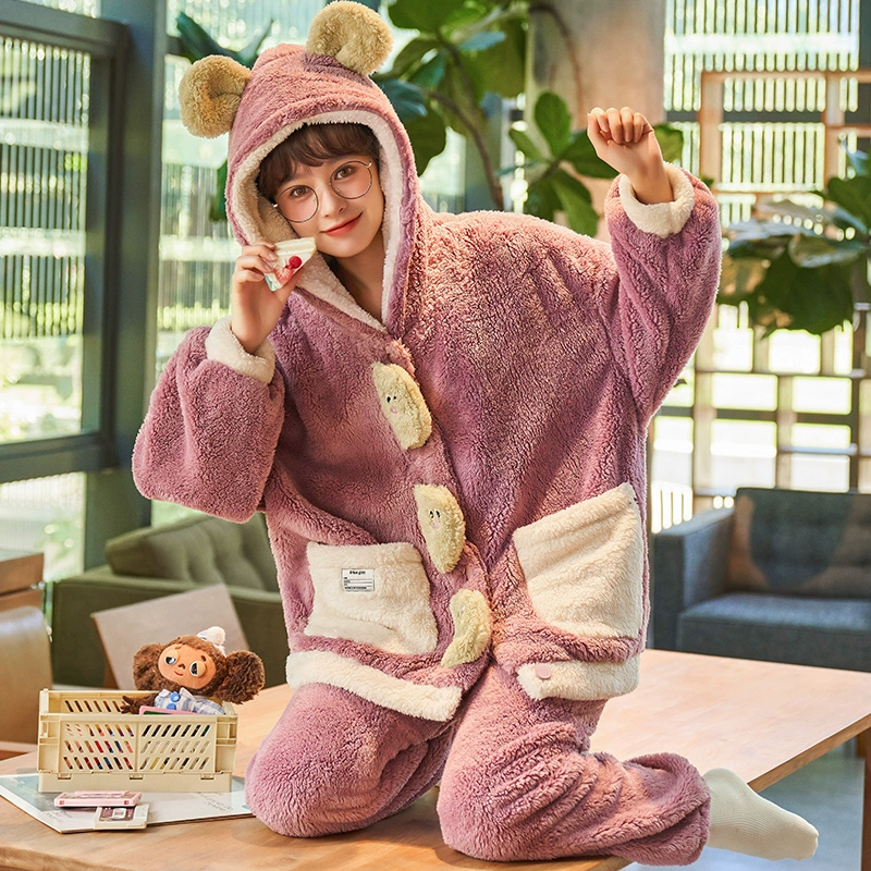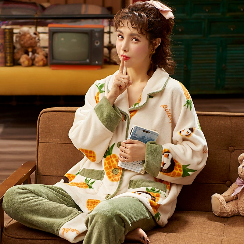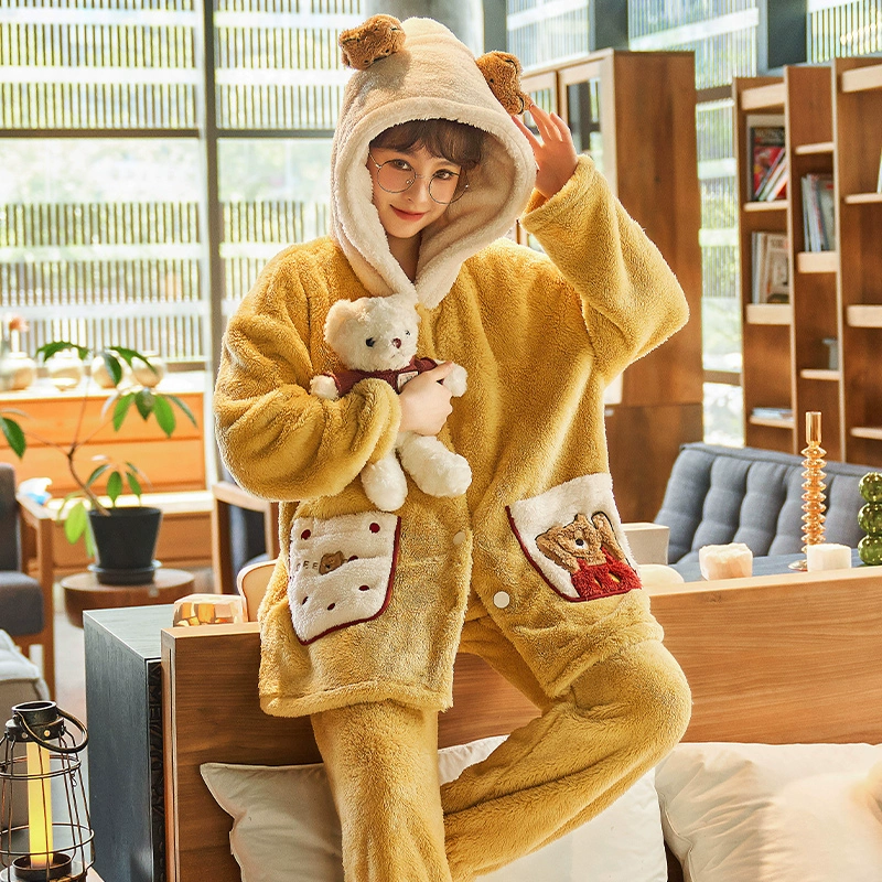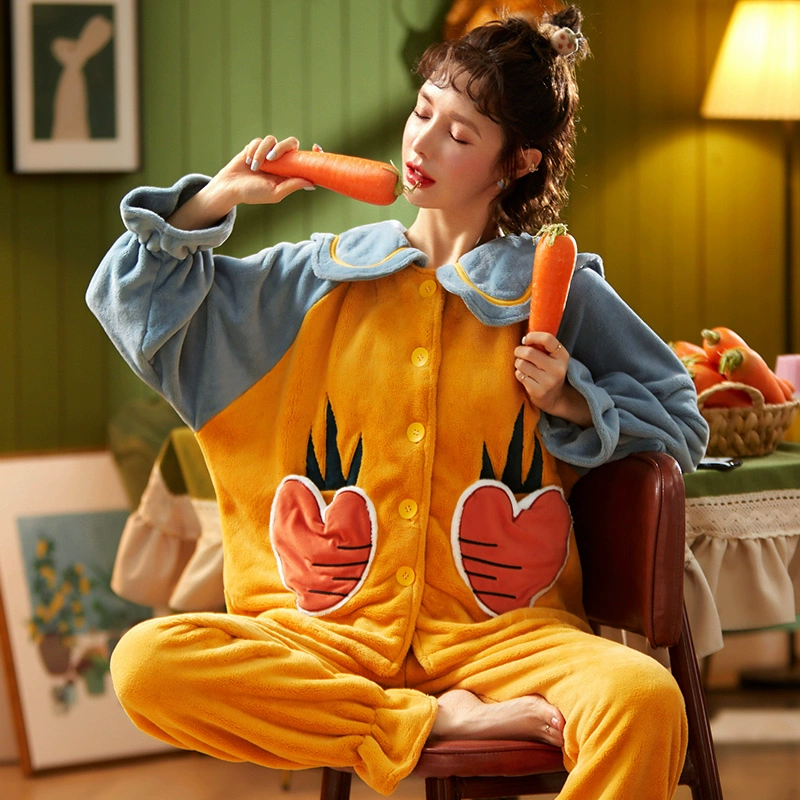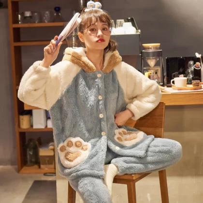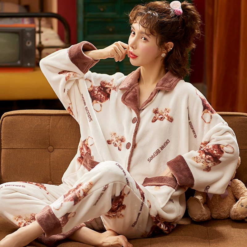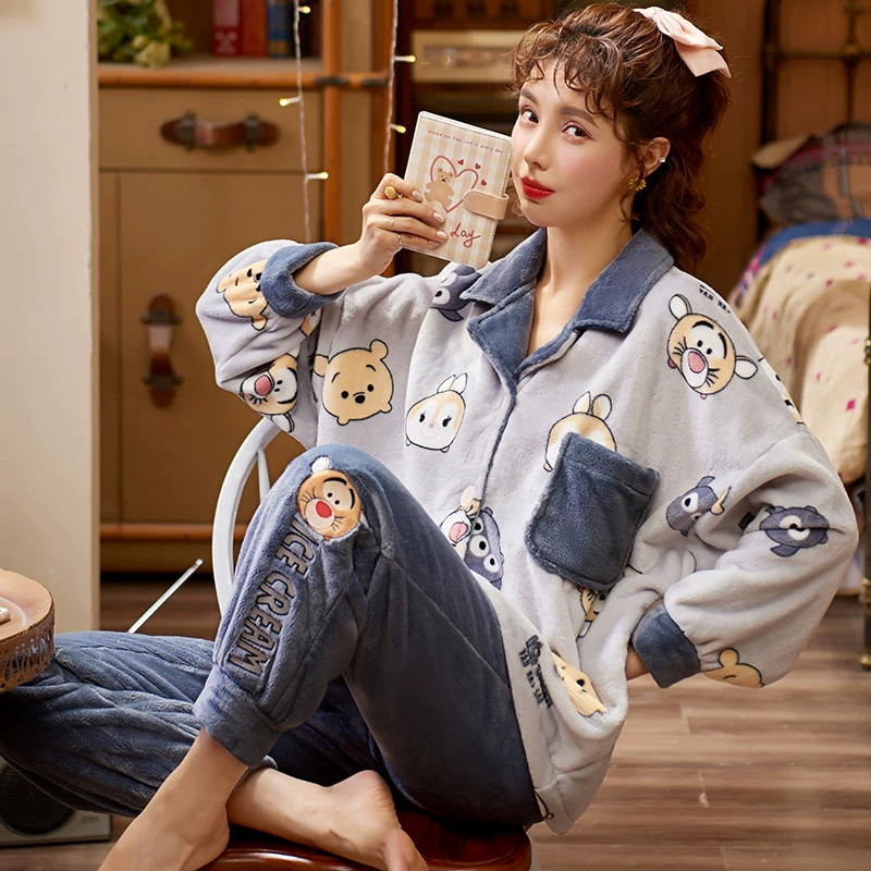 | nameOriginal | Autumn and winter coral velvet pajamas for women, cute cardigans, cartoon flannel thickened velvet suits, spring and autumn home clothes |