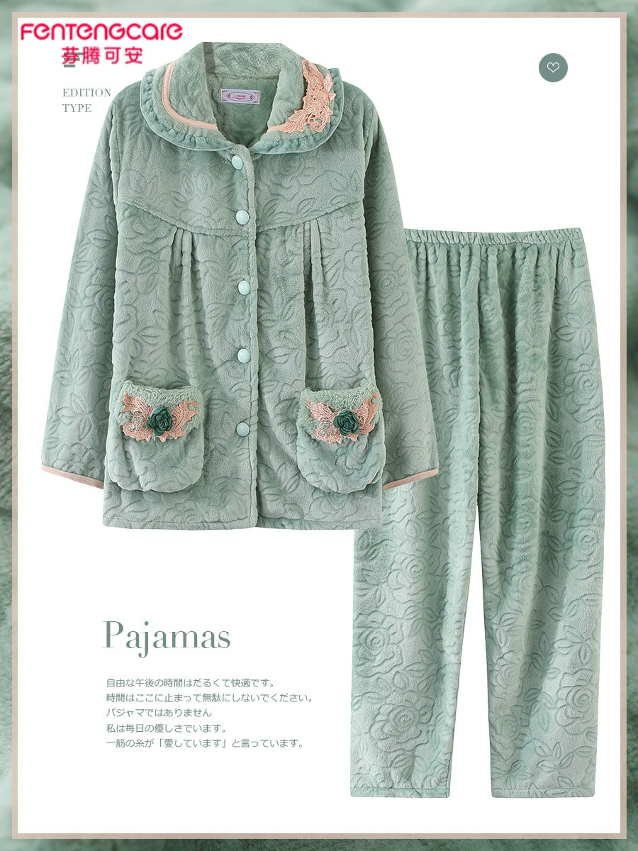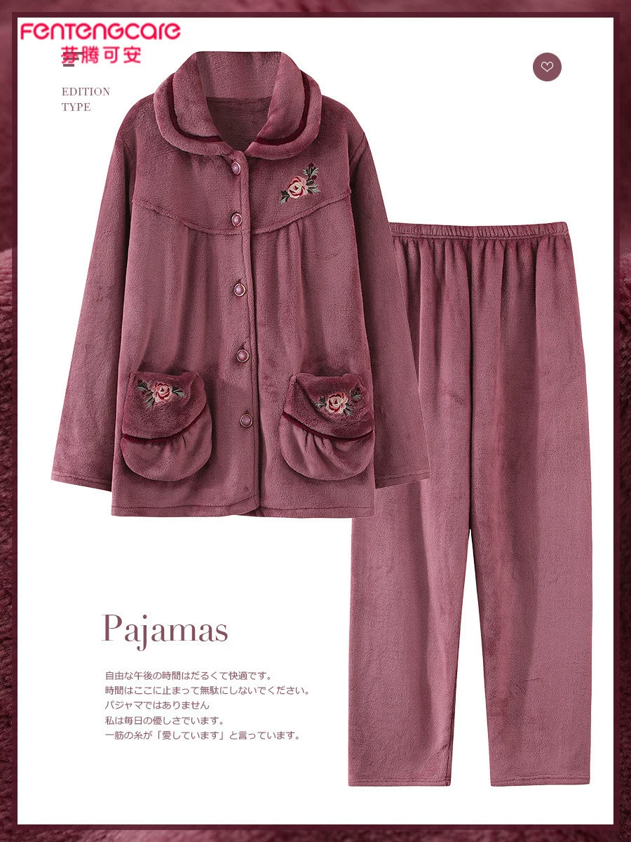 | nameOriginal | Autumn and winter coral velvet pajamas for women thickened and velvet warm flannel large size home clothes middle-aged mother set |
