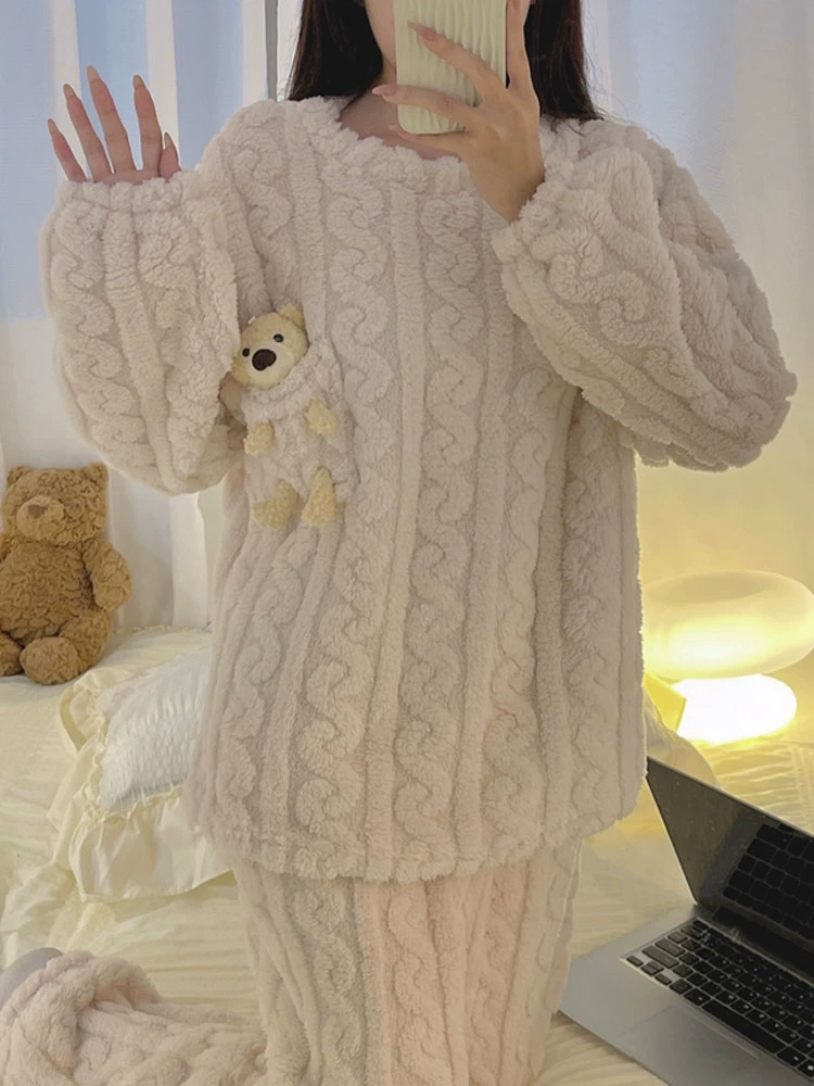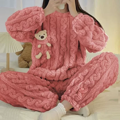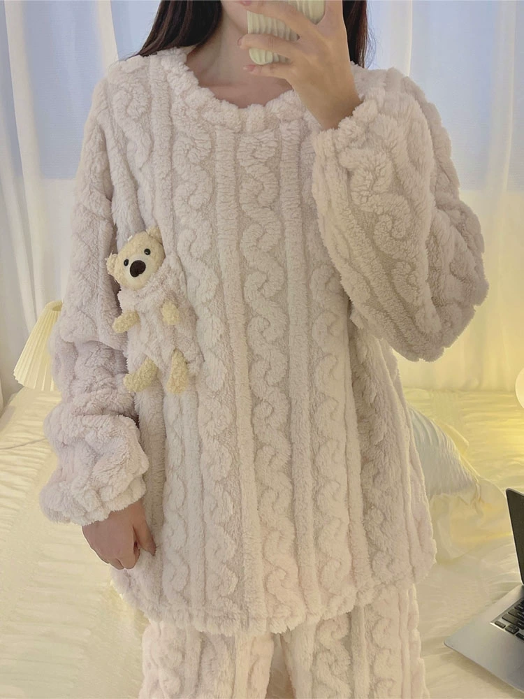 | nameOriginal | Autumn and winter coral velvet pajamas for women, winter plus velvet and thick plush bear internet celebrity can be worn outside home clothes set |