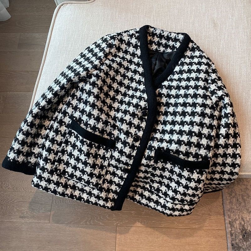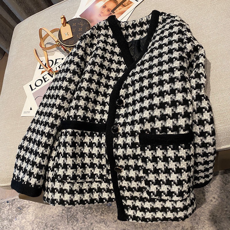 | nameOriginal | Autumn and Winter Cotton Thickened Houndstooth Chanel Style Short Coat Women's 2022 New Korean Style Loose Slimming Woolen Top |