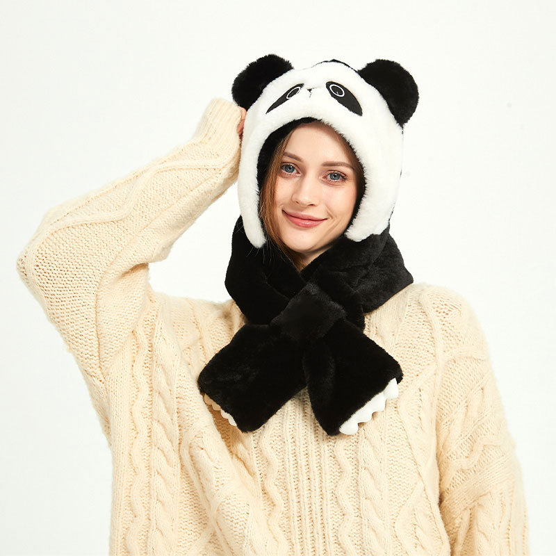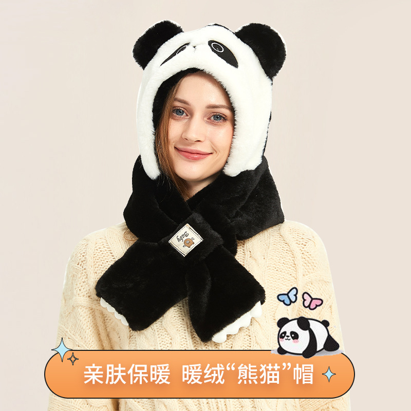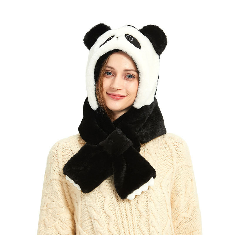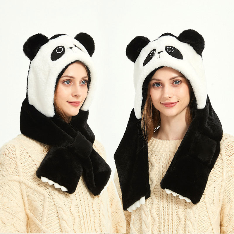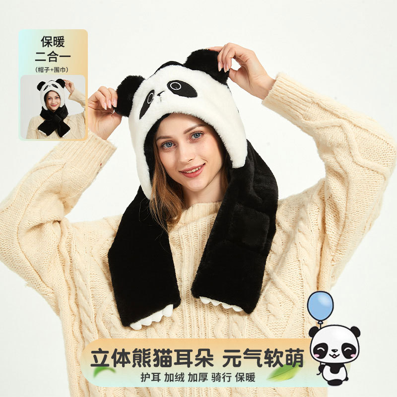 Autumn and Winter cute panda plush hat scarf two-piece thickened warm ear protection cold-proof cartoon hat