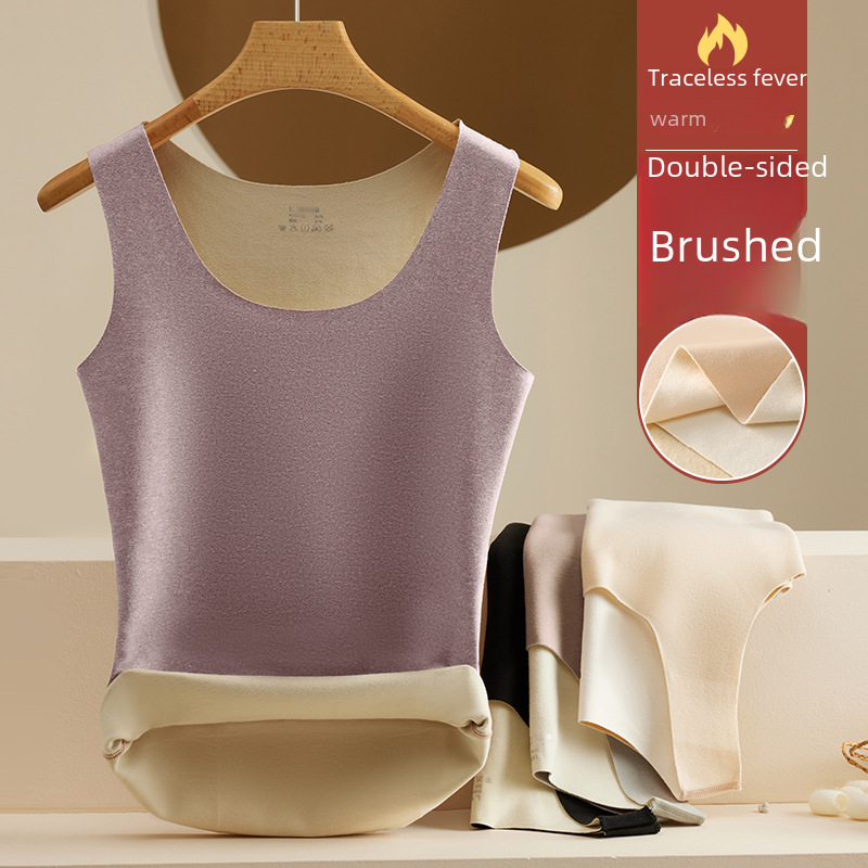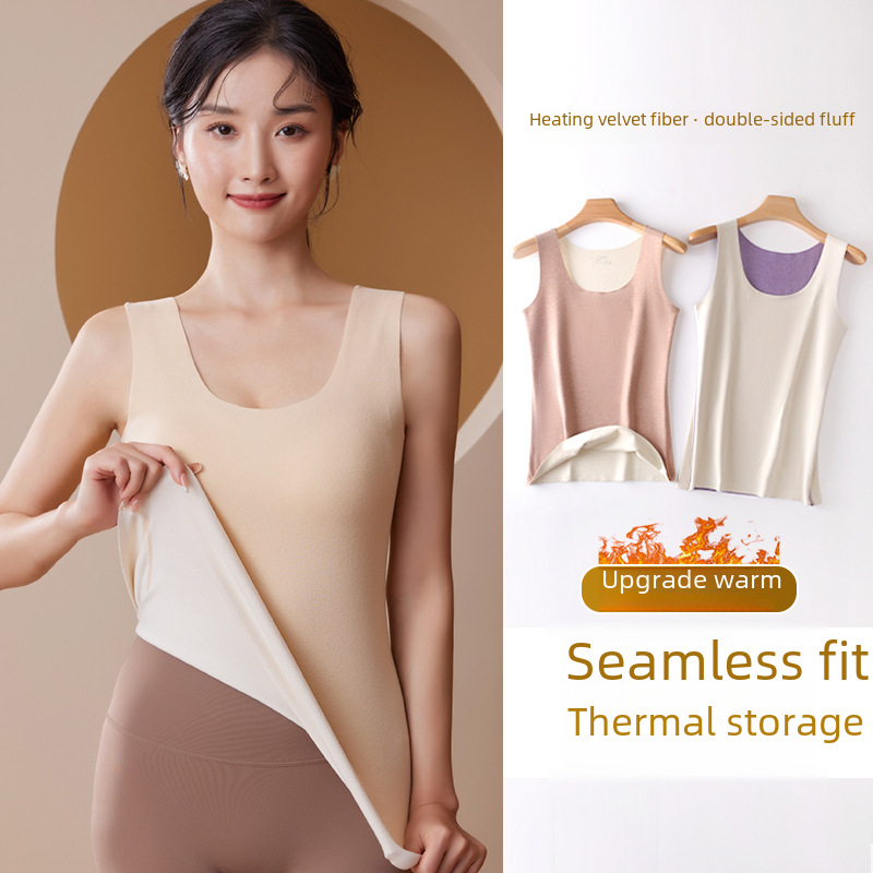| nameOriginal | Autumn and Winter de Velvet seamless thermal vest female heating AB surface double-sided velvet thermal underwear thin slim bottoming vest |