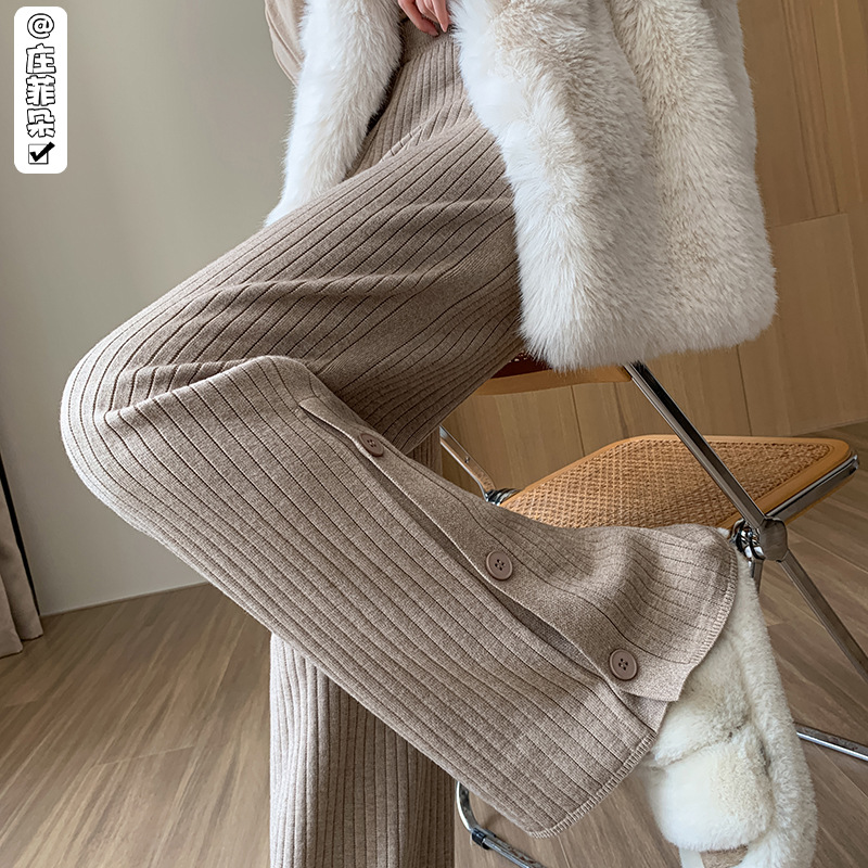 | nameOriginal | Autumn and Winter Design Sense Split Button Wide Leg Pants Women's Meat-Covering Knitted Wool Pants High Waist Dummy Sense Slimming Casual Pants |