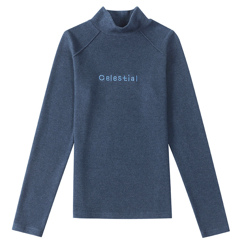 Autumn and Winter Double-sided Fleece Fever Base Shirt Women's Half-high Collar Fleece-lined Thickened Warm Long-sleeved T-shirt Top for Women