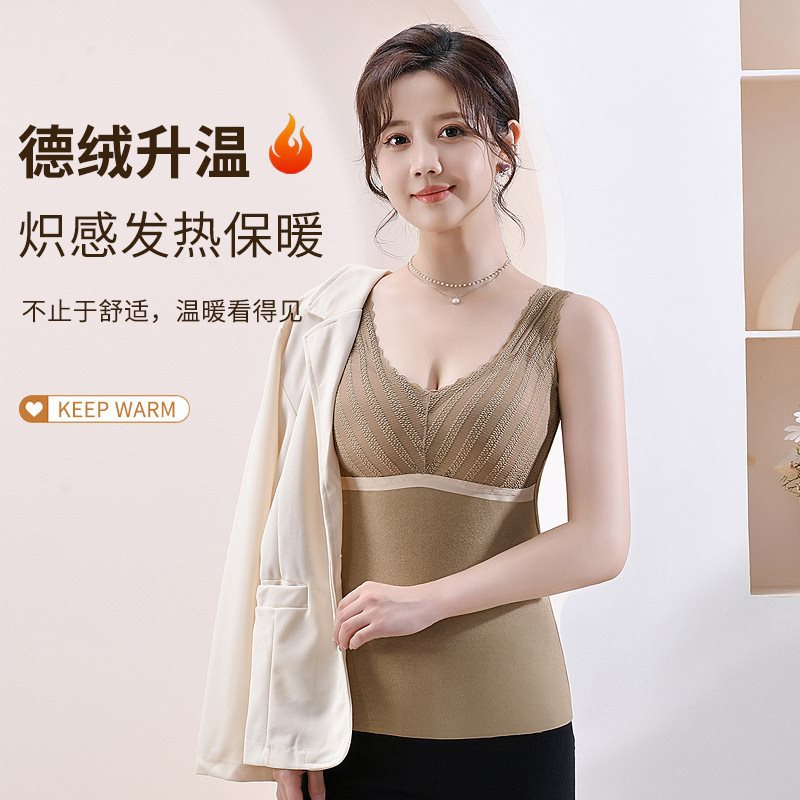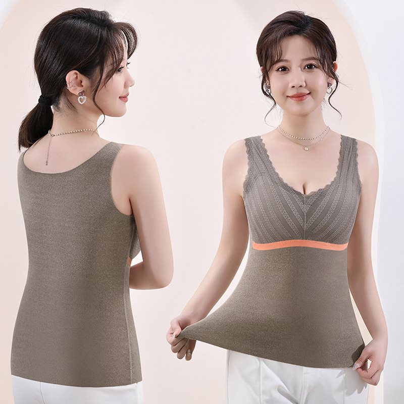Autumn and winter double-sided velvet belt chest pad thermal underwear seamless self-heating base coat women’s plus size thermal vest