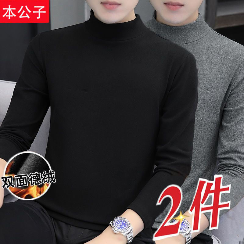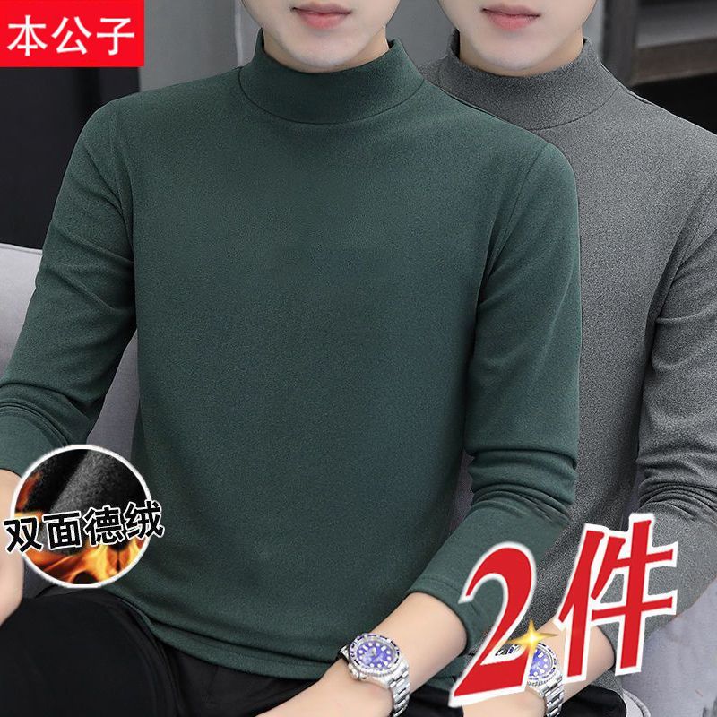 | nameOriginal | Autumn and winter double-sided velvet new fleece-lined base coat semi-high collar men's cold loose long sleeve shirt 1/2 |