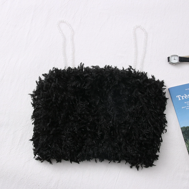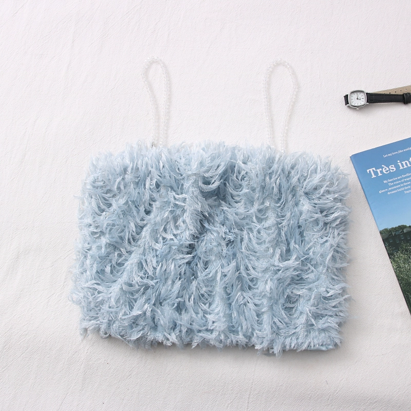 Autumn and winter fashion versatile streaming Su feather camisole vest