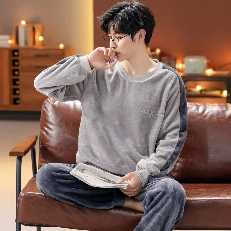 | nameOriginal | Autumn and winter flannel pajamas men's warm plus fat plus size suit coral velvet spring thickened plus velvet home clothes |