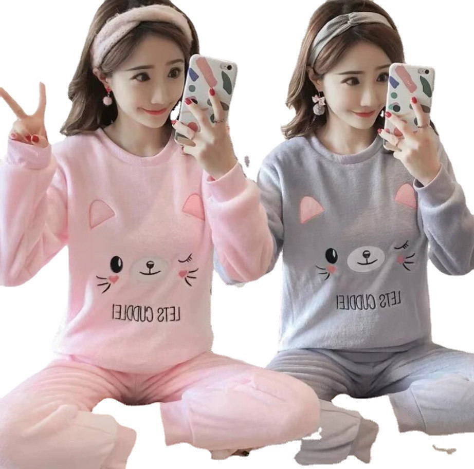 | nameOriginal | Autumn and winter flannel pajamas women's long-sleeved coral velvet warm and thickened cartoon home clothes women's suit plus velvet winter |