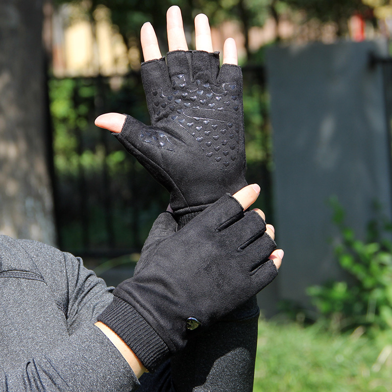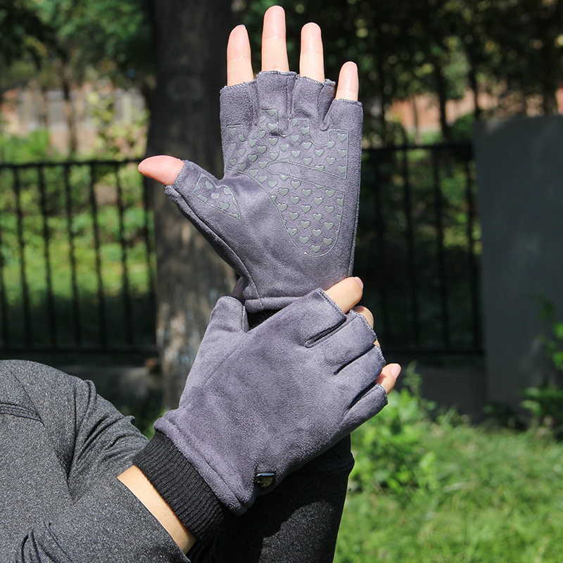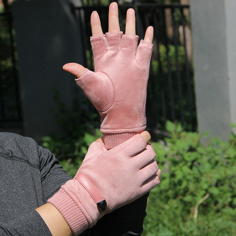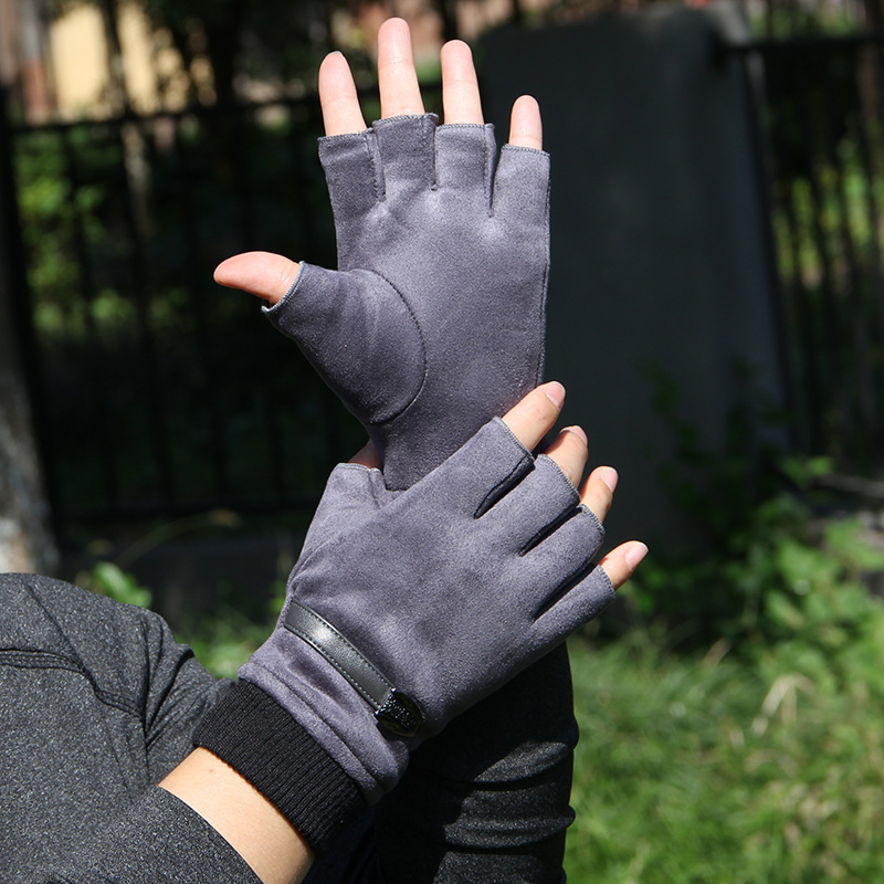 | nameOriginal | Autumn and Winter fleece-lined warm half finger gloves women's suede half half men's driving outdoor riding non-slip open finger |